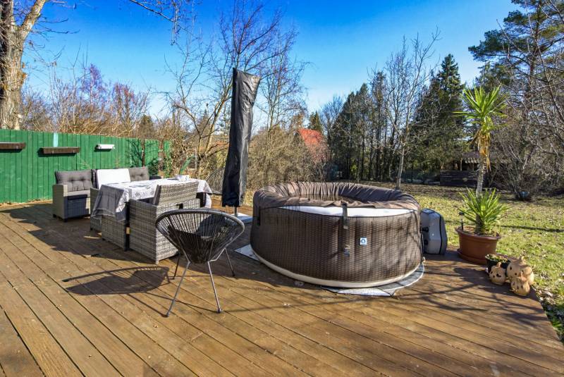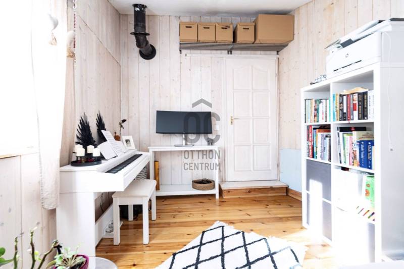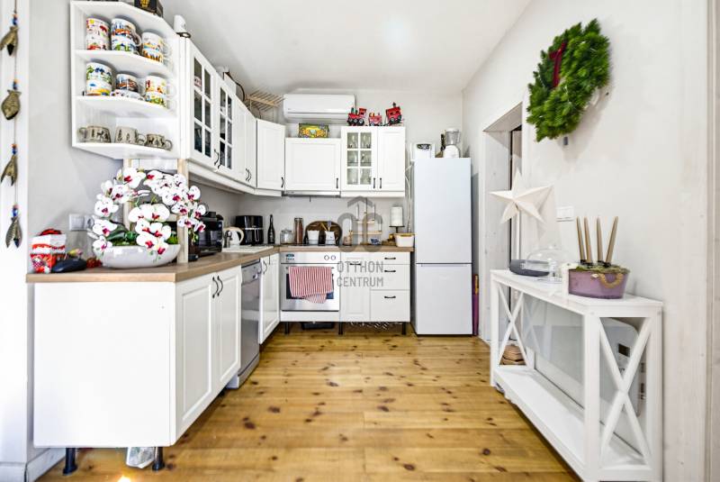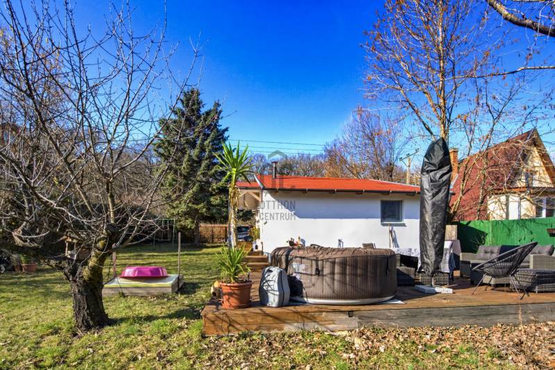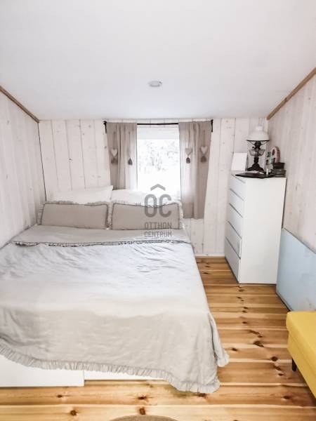 Természetközeli elhelyezkedés, nagy kert, újszerű állapot – ideális választás állandó lakhatásra vagy vendégháznak.Főbb adatok:- Telek: 793 nm- Ház alapterülete: 42 nm- Szobák száma: 2- Terasz: kb. 50 nm- Építés éve: 2020- Beépíthetőség: 10% – ezáltal további bővítési lehetőségHa Szentendrén keres természetközeli, nagy kerttel rendelkező ingatlant, érdemes megismernie ezt a 2 szobás, téliesített házat Boldogtanyán, közvetlenül az erdő mellett.A 2020-ban épült, 42 nm-es könnyűszerkezetes ház egy 793 nm-es telken helyezkedik el, csendes, nyugodt környezetben.Az ingatlan legnagyobb értékei közé tartozik a nagy méretű kerttel rendelkező telek, a ház újszerű, megkímélt belső állapota, valamint a hozzá kapcsolódó kb. 50 nm-es tágas terasz, amely kiváló helyszín pihenésre, baráti összejövetelekre vagy akár egy nyugodt reggeli kávéhoz a természet közelségében.A helyiségek világosak és hangulatosak. A lakótérben fenyő hajópadló, a fürdőszobában járólap található. A természetes fa burkolatok egyedi hangulatot adnak a ház belső tereinek.A ház téliesített, a falakban 10 cm kőzetgyapot szigetelés található.A fűtésről wifi vezérlésű Orion elektromos fűtőpanelek, egy klíma, valamint egy fatüzelésű kályha gondoskodik.A melegvizet Siemens Electronic Comfort átfolyós elektromos vízmelegítő biztosítja.2021-ben a teljes villamos hálózat cseréje megtörtént, jelenleg 3×16 amper áll rendelkezésre.A ház fa nyílászárókkal és bitumenes zsindely tetőfedéssel készült.A 793 nm-es telken 2 autó számára kialakított kocsibeálló található.Közművek:- víz- villany- gáz az utcában- kb. 4 m³-es emésztőElhelyezkedés:Az ingatlan Szentendrén, Boldogtanya városrészben, természetközeli környezetben található, közvetlenül az erdő mellett.Autóval néhány perc alatt elérhető a 11-es főút, és kb. 15 perc alatt megközelíthető Szentendre belvárosa.Ajánljuk:- pároknak vagy egyedülállóknak állandó lakhatásra- hétvégi háznak vagy nyaralónak- befektetőknek, vendégház üzemeltetéséreAz ingatlan üdülőövezetben található, a telek 10% beépíthetőséggel rendelkezik, ezáltal további bővítési lehetőségeket kínál.Ha egy csendes, természetközeli házat keres Szentendrén, amely pihenésre és akár állandó lakhatásra is alkalmas, érdemes személyesen is megtekinteni.Hívjon bizalommal, és ne maradjon le erről a különleges hangulatú ingatlanról!Szentendre, Boldogtanya, 2 szobás ház, kertes ház, könnyűszerkezetes ház, hétvégi ház, nyaraló, erdő mellett, természetközeli ingatlan, nagy terasz, téliesített ház, nagy telek, kis fenntartású ház, befektetés, vendégház