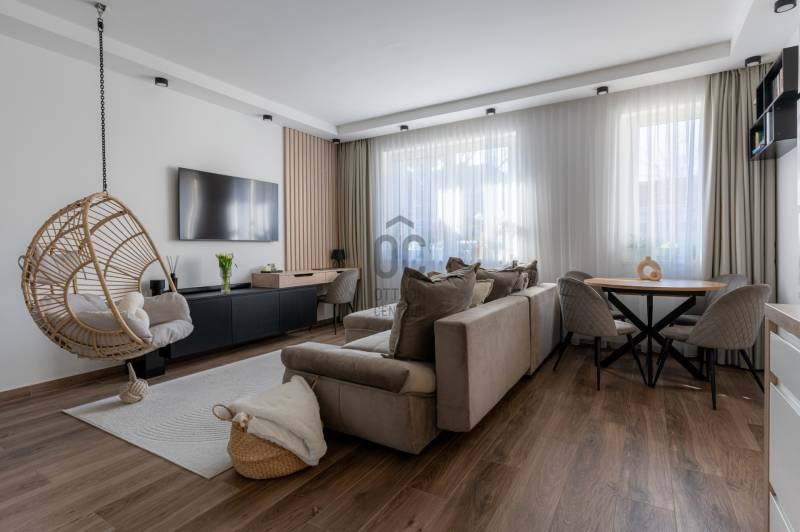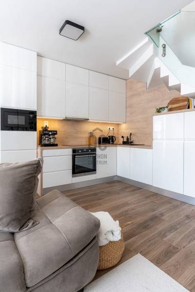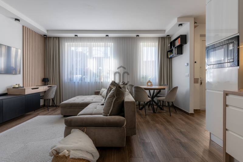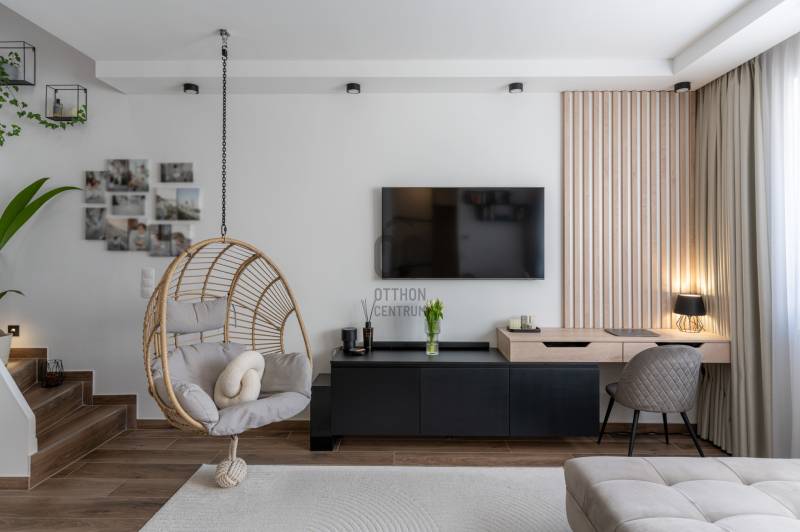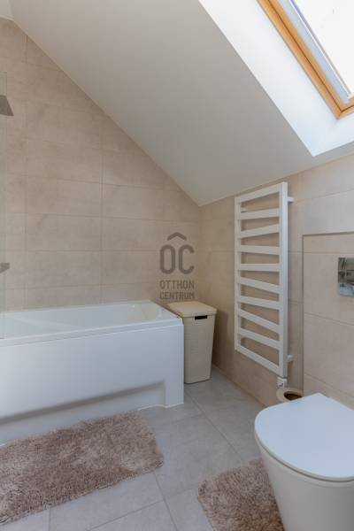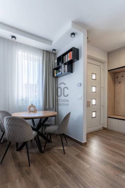 Prémium életérzés Budakeszi szívében – azonnal költözhető, teljesen berendezett otthonVan egy pont, amikor egy lakás már nem csak négy fal – hanem egy tudatos döntés a minőség mellett. Ez az otthon pontosan ilyen.Budakeszi egyik legkeresettebb részén, mégis nyugodt, csendes környezetben kínálok megvételre egy 2023-ban épült, kétszintes, nettó 70 m²-es, sorházi hangulatú lakást – teljes berendezéssel, első tulajdonostól.A délnyugati tájolásnak köszönhetően a terek egész nap fényben úsznak, az átgondolt belső kialakítás pedig nemcsak esztétikus, hanem kifejezetten élhető. Ide valóban csak megérkezni kell.Alsó szint – ahol az élet zajlikEgy praktikus előszoba fogad beépített tárolókkal, majd egy igényesen kialakított fürdőszoba, amely egyben mosókonyhaként is funkcionál.A lakás szíve a tágas, amerikai konyhás nappali: prémium minőségű, egyedi bútorokkal, jól elkülönített dolgozósarokkal – tökéletes tér a mindennapokhoz és a feltöltődéshez.Felső szint – a nyugalom tereA nagyobb hálószoba elektromos redőnnyel és egy tágas, beépített gardróbbal biztosít kényelmet.A második szoba ideális gyerekszobának, dolgozónak vagy vendégszobának.Az emeleti, kádas fürdőszoba szintén egyedi bútorokkal készült – itt minden részlet a kényelmet szolgálja.Ami igazán kiemeli ezt az otthont– Teljesen bútorozott és gépesített – nincs kompromisszum– Egyedi, magas minőségű beépített bútorok minden helyiségben– Modern, energiatakarékos megoldások – alacsony fenntartási költség– Panasonic hőszivattyús padlófűtés mindkét szinten– Hűtő-fűtő klíma a maximális komfortért– Saját, 30 m²-es kertkapcsolat– 2 fedett autóbeállóA két fedett beálló kötelezően megvásárolandó, összesen 5 millió Ft értékben.A zárt, rendezett lakóparkban mindössze néhány lakás található, saját kertekkel és belső parkolóval – biztonságos, barátságos közeg, ahol jó élni.Lokáció, ami valódi értékA ház előtt buszmegálló, így a Széll Kálmán tér és Budaörs gyorsan elérhető.A közelben minden megtalálható: bevásárlási lehetőségek, iskola, óvoda, kávézók – minden, ami a kényelmes mindennapokhoz kell.Ez nem csak egy lakás. Ez egy kész élethelyzet.Ha olyan otthont keresel, ahol a minőség, a funkcionalitás és az azonnali költözhetőség találkozik – ezt érdemes megnézned.