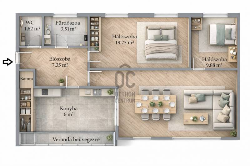 Természetközeli nyugalom, elegáns keretek közöttTatabánya Óvárosának csendes, zöldövezeti részén kínálunk egy közel 96 m²-es, kertkapcsolatos lakást – egy otthont, amely méreteiben és hangulatában inkább egy kisebb ház érzetét adja.A terek arányosak, átgondoltak, finoman őrzik egy igényes, kulturált múlt lenyomatát. A konyha és az üvegezett veranda közötti nagy tálalóablak különleges kapcsolatot teremt: a veranda egész évben használható, természetközeli étkezőként működik, közvetlen kertkapcsolattal.A jelenlegi nagy hálószoba korábban két helyiség volt, így igény szerint újra osztható.A fűtést kiváló állapotú öntöttvas radiátorok adják, és klíma is rendelkezésre áll. A nyílászárók használhatók, ugyanakkor a korszerűsítés lehetősége adott.Saját, közvetlenül a bejárat mellett nyíló tároló tartozik a lakáshoz.Ez az ingatlan nem csupán lakásként értelmezhető, de családosoknak egy élmény a hatalmas nappalijával.Terei és hangulata miatt kiváló lehet:– elegáns irodának, ahol a társsasházi környezet előnyt jelent– magánrendelőnek– vagy akár alkotótérnek egy művész számára, ahol a fény, a nyugalom és a tér inspiráló közeget ad-Az ingatlan reális áron kerül piacra. Festéssel azonnal költözhető, de a mai igényekhez igazítás teret ad az egyéni elképzeléseknek.A képek látványterveket is tartalmaznak, és az alaprajzok a pontos méreteket mutatják.