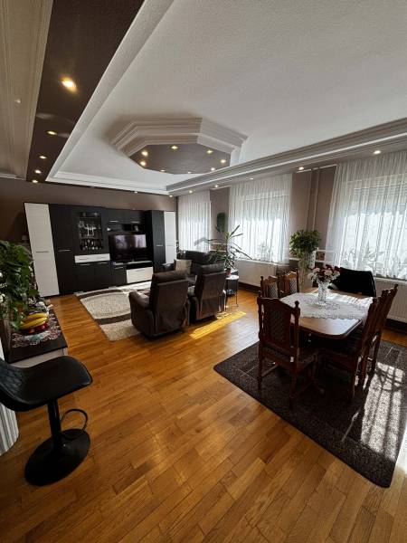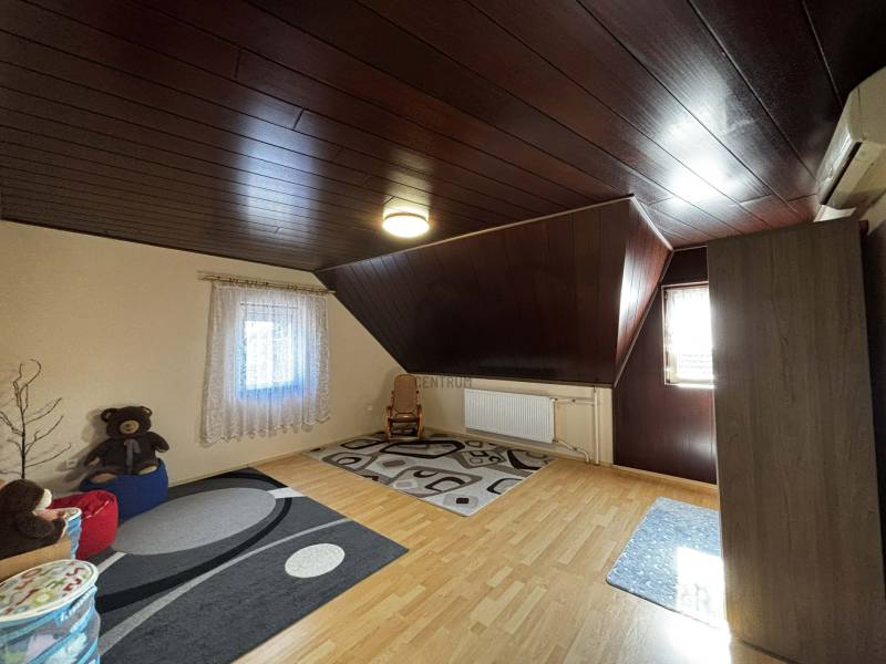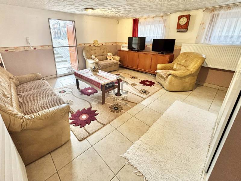Központi elhelyezkedéssel, iskola, vasútállomás és üzletek közelében eladó egy 275 m²-es, 3 szintes, 6 szobás + nappalis, két generáció számára is ideális ikerházfél, 742 m²-es saját telekkel.Az ingatlan két konyhával, 2 beállásos garázzsal, számos tárolási lehetőséggel rendelkezik. A ház szigetelt, fa thermo nyílászárókkal, 3 klímával, pár éves kondenzációs gázkazánnal, víztisztító rendszerrel és elektromos kovácsoltvas kerítéssel felszerelt.A kertben a gyerekhinta, szaletli és a sütögető is a vételár részét képezi, valamint az ingatlanban lévő bútorok egy része is. Ideális választás nagycsaládosoknak, több generáció együttélésére, vagy akár otthoni vállalkozás kialakítására is.