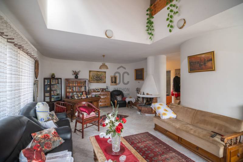 ELADÓ PANORÁMÁS, 3 SZINTES CSALÁDI HÁZ POMÁZ KIEMELT ZÖLDÖVEZETI RÉSZÉNEladásra kínálunk a Pomáz egyik csendes, zöldövezeti utcájában egy 286 m²-es, tégla építésű, háromszintes családi házat, 550 m²-es telken. Az ingatlan tágas tereivel, jó állapotával és örök panorámájával ideális választás nagycsaládosok vagy akár több generáció együttélésére.A ház 1996-ban épült, stabil szerkezetű, jó állapotú, délkeleti tájolásának köszönhetően világos és napfényes.Az ingatlan főbb jellemzői•Lakótér: 286 m²•Telek mérete: 550 m²•Építés módja: tégla•Szintek száma: 3 (pince + földszint + emelet)•Szobák száma: 5•Fürdőszobák: 3•Külön WC: 2•Fűtés: gáz cirkó•Tájolás: délkelet•35 m²-es terasz•24 m²-es garázs•Több tárolóhelyiség•Aszfaltozott utcában találhatóHelyiségek elosztásaPince – 95,6 m²:garázs, kazánház, több tárolóhelyiség, közlekedő és lépcsőház.Földszint – 101,8 m²:tágas, közel 40 m²-es nappali, konyha + étkező, szoba, kamra, WC, közlekedők, valamint egy panorámás terasz, amely ideális családi vagy baráti összejövetelekhez.Emelet – 88,9 m²:3 hálószoba, fürdőszoba, külön WC és előtér.Környezet és elhelyezkedésAz ingatlan csendes, zöldövezeti környezetben található, mégis kiváló infrastruktúrával. A környék nyugodt, családbarát, ugyanakkor Budapest könnyen és gyorsan megközelíthető, így ideális azok számára, akik a természet közelségét szeretnék ötvözni a főváros közelségével.Az ingatlan tágas tereinek és elrendezésének köszönhetően kiválóan alkalmas többgenerációs otthonnak, vagy akár olyan családok számára, akik nagy életteret keresnek nyugodt környezetben.Prémium irodai szolgáltatásaink•Kedvezményes ügyvédi háttér•Ingyenes hitel- és CSOK-ügyintézés•Teljes körű ügyintézési támogatás az adásvétel minden lépésében