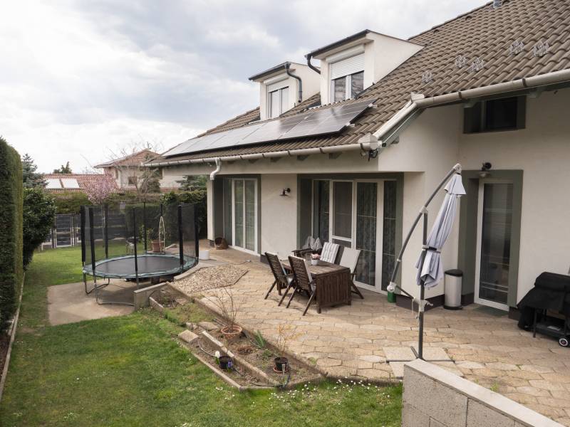 Fót egy kiváló ingatlana, a Királydombon található, exkluzív, modern családi ház eladó! Ez a frissen felújított, téglaépítésű ingatlan 257 négyzetméteren terül el, és 7 tágas, világos szobával várja új lakóit. A ház különlegességei közé tartozik a nagy kövezett terasz, amely a rendezett kertre néz, valamint a nagy belmagasság, amely tovább fokozza a térérzetet. A prémium kivitelezés és az egyedi tervezés garantálja, hogy minden részlet a legmagasabb igényeket szolgálja ki. A gáz (cirkó) fűtés és a légkondicionáló biztosítja a kellemes hőmérsékletet, míg a napelem fenntartható energiaforrást kínál.A csendes környék, ahol az ingatlan található, a felkapott környékek közé tartozik, ideális választás a családok számára. A környék ellátottsága kiváló: közeli üzletek, iskolák és egészségügyi intézmények könnyen elérhetőek, így a mindennapi élet kényelmesen zajlik. A zöldövezeti elhelyezkedés nyugalmat és biztonságot kínál, így a gyerekek szabadon játszhatnak a környéken.A közlekedési lehetőségek is kedvezőek: autóval gyorsan elérheti a főbb közlekedési csomópontokat, míg a tömegközlekedés is jól kiépített, így a város többi része könnyen megközelíthető. Az ingatlanhoz önálló garázs tartozik, amely 2 autó számára biztosít parkolási lehetőséget.Ne hagyja ki ezt a páratlan lehetőséget! Ha további kérdései lennének az ingatlannal kapcsolatban, vagy szeretné megtekinteni a házat, kérem, keressen bizalommal! A CSOK Plusz lehetőség is elérhető, így akár egy új otthon megvásárlása is valóra válhat!