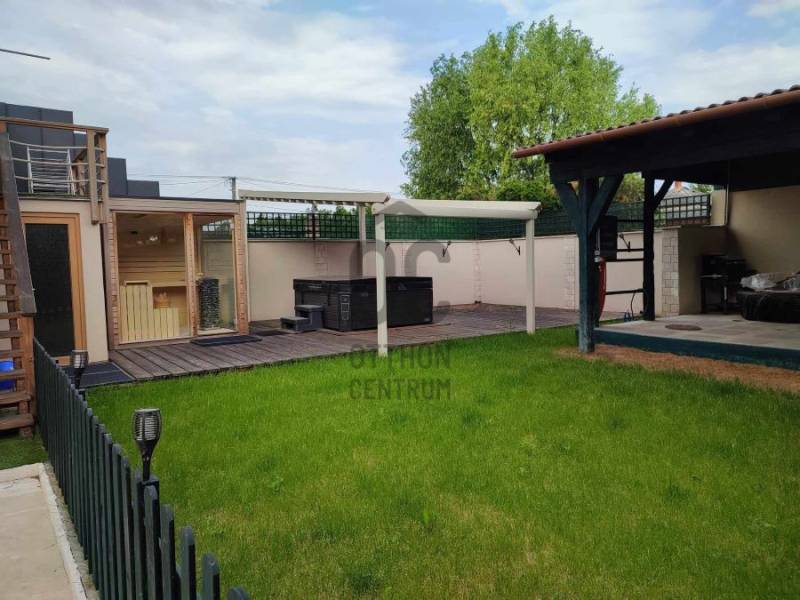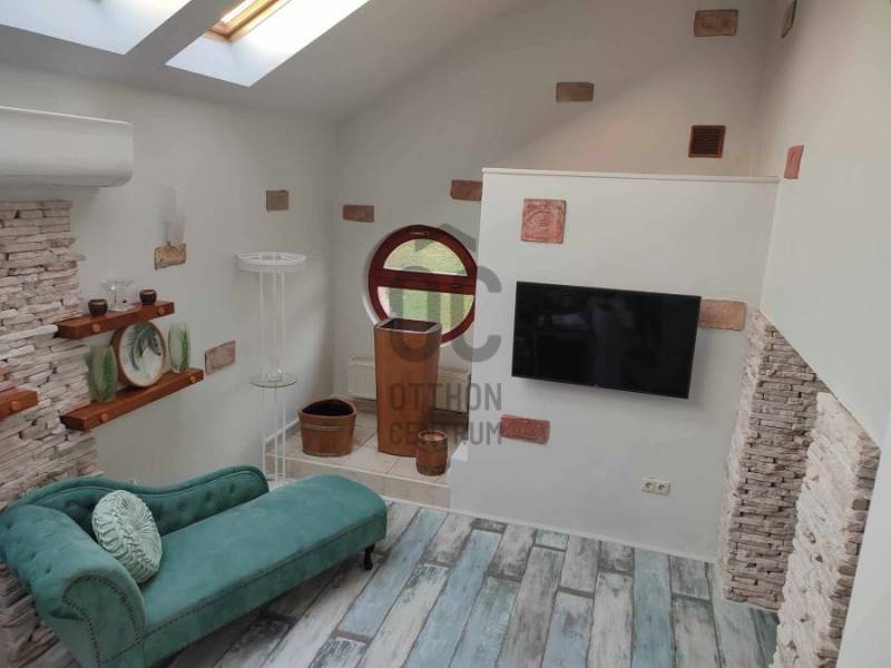Megvételre kínálom ezt a 697 m2-en elhelyezkedő, 226 m2-es téglából épült, szinteltolásos családi házat, amelyen 1995-ben teljes felújítást végeztek.Az ingatlan 2 önálló bejárattal rendelkező lakrészt + önálló bejárattal rendelkező iroda helyiséget foglal magában. Az ingatlanban 8 szoba, 4 fürdőszoba, továbbá a kertben pagoda, sütögető, valamint kemence nagyméretű szaletliben, jakuzzi, szauna, kerti fürdőház található.A kerítés kővel burkolt, egyedi kapuval.Ezen kívül a kertben van még egy kerti tó is. Néhány fontos Jellemző az ingatlanról:Gépészet : állapota, kora jó, használható, fő egységek cseréje nem indokolt Légtechnika : részben légkondicionáltFűtés típusa : épület központiFűtés technológiája : gáz kazánHő leadó szerkezetek típusa: radiátorokFűtés szabályozás típusa: termosztátMeleg víz ellátás típusa: villanybojlerTetőszerkezet : magas tetőAlakja : nyereg tetőTetőszerkezet anyaga: fa fedélszékesTetőfedés : cserép fedésKülső nyílászárók anyaga : fa és műanyag szerkezetekKülső nyílászárók állapota : jóÜvegezés : 2 rétegű üvegezésNyílászárók gyártási éve, kora : 2015 Komfort fokozat összkomfort, triplakomfort Amennyiben megtetszett Önnek ez a nem mindennapi ingatlan, kérem keressen a megadott elérhetőségen!