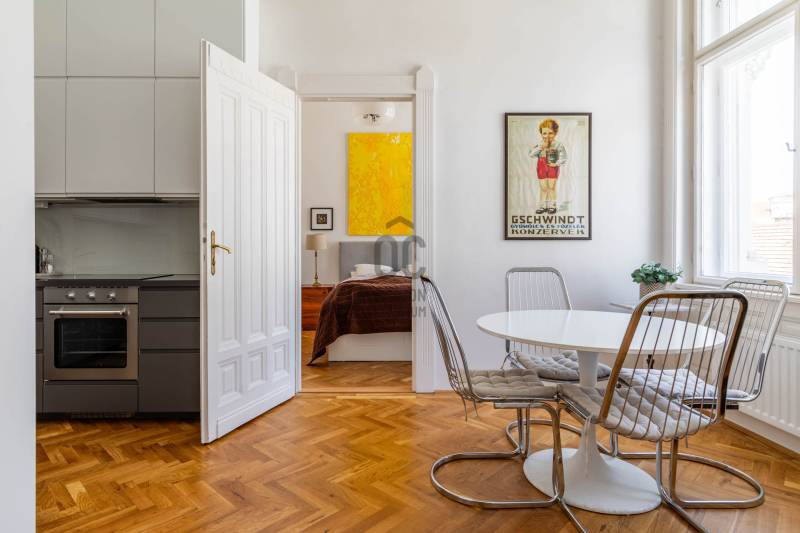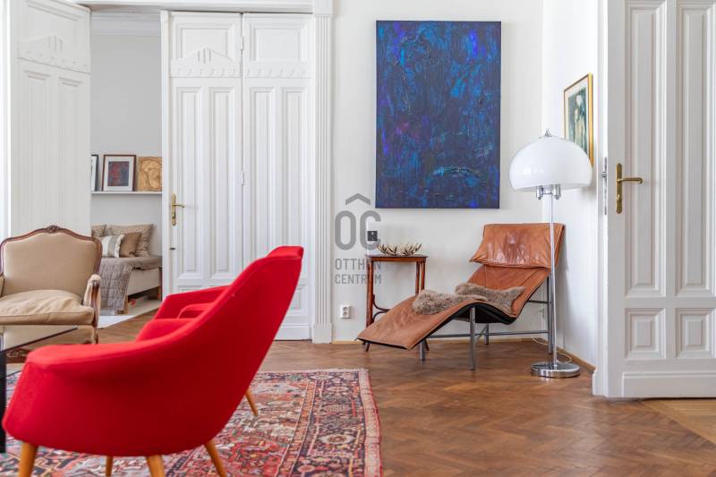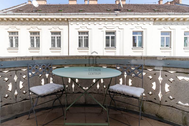 A belvárosban ritkán találni olyan nagypolgári lakást, ami egyszerre őrzi a klasszikus értékeket és valóban élhető, világos tereket kínál. Magas emelet, erkély, hatalmas ablakok és egy időtálló elegancia – ez a lakás pontosan ezt adja. Üdv itthon!RÖVID ÖSSZEFOGLALÓBudapest V. kerületében, a Veres Pálné utcában, a Fővám tér közelében, liftes társasház magas emeletén kiadó egy 113 m²-es + 3,8 m² erkélyes, nappali + 2 hálószobás, külön konyha-étkezős, 2 fürdőszobás, napfényes, klasszikus polgári lakás.Miért pont ez a lakás?- Nagypolgári hangulat: 4,2 m belmagasság, halszálkás parketta, díszes nyílászárók- Közel 36 m²-es nappali, 4 hatalmas ablakkal- Erkélyes – ritkaság ezen a környéken- Kiváló elosztás, akár külön lakrész is kialakítható- Világos, keleti tájolás – reggeli napfény az egész lakásban- Liftes, rendezett házOTTHONA lakás nagy alapterületének és átgondolt elrendezésének köszönhetően kényelmes, jól használható tereket kínál. A funkciók logikusan elkülönülnek, mégis egységes, áramló térérzet jellemzi.Az előszobából egy tágas közlekedő nyílik, amely dolgozóként is jól használható. Ebből érhető el a vendég fürdőszoba, amelynek különlegessége az eredeti, festett ólomüveg, így természetes fényt kap a lépcsőház felől.A nappali a lakás központi tere: közel 36 m² alapterületű, 4,2 méteres belmagassággal. Négy nagyméretű ablak néz a Veres Pálné utcára, keleti tájolásának köszönhetően reggel napfényben úszik. Az erkély a nappaliból nyílik, ahonnan hangulatos belvárosi panoráma tárul elénk: tetők, templom és a Veres Pálné utca karakteres látványa.A nappali két oldalán helyezkednek el a hálószobák, így jól szeparált, mégis egységes térszerkezet alakul ki. A kisebb hálószoba az étkező felől közelíthető meg, és saját fürdőszobával rendelkezik, így önálló egységként is használható. A nagyobb, 21 m²-es hálószoba tágas, jól berendezhető. TÁRSASHÁZA ház liftes, azonban a lift a földszintről néhány lépcsőn keresztül érhető el. A lakás a függőfolyosó elején helyezkedik el, közvetlenül a lépcsőház és a lift közelében.A közös költség 48 000 Ft, amely tartalmazza a szemétszállítást, lift karbantartást, takarítást és a felújítási alapot. Minden egyéb fogyasztás egyedi mérés alapján fizetendő. A fűtés modern, elektromos rendszerrel megoldott: a hidegburkolt helyiségekben padlófűtés, a többi helyiségben radiátoros hőleadás működik.LOKÁCIÓ – DÉL-BELVÁROSEz a környék Budapest egyik legélhetőbb része. Pár perc sétára a Duna-part, a Vásárcsarnok, kiváló éttermek és kávézók találhatók. A Szabadság híd és a Gellért-hegy közelsége miatt a mindennapok része lehet egy esti séta vagy kikapcsolódás.Kiváló közlekedés:- 47–49 villamos- M3, M4 metró, minden pár percen belül elérhetőMilyen feltételekkel bérelhető az ingatlan?- minimum 12 hónap- 2 havi kaució- gyerek és kisállat megengedett- dohányzás kizárólag az erkélyen- azonnali költözésHa egyedi, karakteres otthont keresel, amit nem jön szembe minden sarkon, akkor megtaláltad.Keress bátran és egyeztessünk megtekintési időpontot!----------------------------------------------A hirdetésben szereplő információk tájékoztató jellegűek. A tévedés és az árváltoztatás jogát fenntartjuk. Az esetleges elírásokért és technikai hibákért felelősséget nem vállalunk.