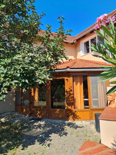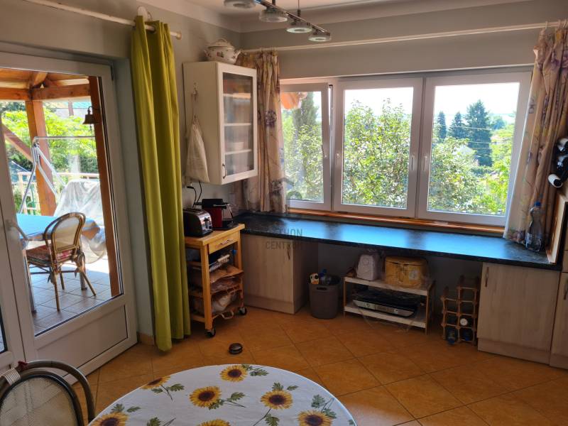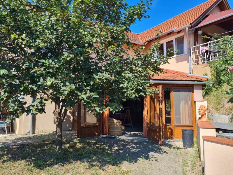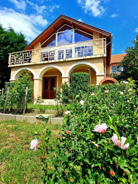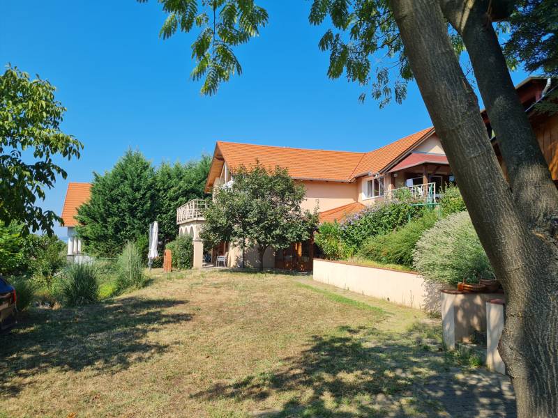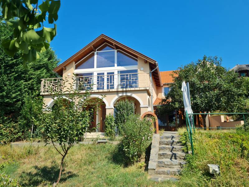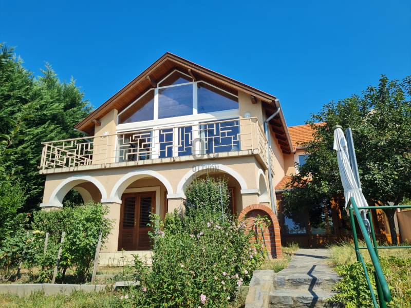 Badacsonyban vált eladóvá ez a különleges atmoszférával rendelkező épület, mely egyedi kialakításával egyből kitűnik az őt körülölelő ingatlanok közül. A területről és a ház egészéből meseszép a panoráma a Balaton vizére, de ha ez nem lenne elég, a Badacsony is ott magasodik az épület mögött.A belterületi, 1519 négyzetméteres telken a jelenlegi tulajdonos tervei és álmai alapján készült el 2005-ben a hétvégi házként bejegyzett ingatlan – mely családi otthonnak is kitűnő választás lehet -. Az épület alapjául egy már meglévő bazaltkő pince szolgált, ez került átépítésre és bővítésre korszerű anyagok felhasználásával.A ház két szinten összesen 166 négyzetméternyi hasznos alapterülettel rendelkezik.A földszinten kialakított helyiségeket az előtérből közelíthetjük meg. Itt található egy 27 négyzetméteres, parasztfödémes, meghitt hálószoba, mely közvetlen kertkapcsolattal rendelkezik és akár két különálló hálóvá osztható. Mellette kapott helyet a lépcsőház, egy fürdőszoba, tároló, pince és egy műterem.Az emeleten lévő helyiségek közül a teljes üvegfelülettel ellátott nappali/műterem és a hozzá tartozó terasz olyan egyedi és megismételhetetlen hangulatot áraszt, hogy itt egyből az az érzése az embernek, hazaért...Ezt a nappali részt egészíti ki még egy közlekedő, hálószoba, fürdőszoba, konyha és étkező, valamint egy loggia is.Az épület mindkét szintjén beépítésre került egy-egy fatüzelésű kályha, így hűvösebb időszakban ezek szolgáltatják a meleget.A kert teljesen körbekerített, több autó egyidejű parkolása is megoldható telken belül.Az udvar teraszos kialakítású, akár egy medence, gyermek játszó vagy nyári konyha kiépítésére is bőven van még hely.Az épület melletti részen egy fedett, hangulatos kerti kiülő is helyet kapott, a kert alsó részén pedig egy téglából épült tárolót is építettek.A ház egész évben aszfaltos úton könnyen megközelíthető, a Balaton partjától gyalogosan 15 percre, a központtól 2 perces autóútra van.Ajánlom az ingatlant mindazok figyelmébe, akik a “béke szigetét” keresik távol a világ zajától. Az épület állandó lakhatásra és nyaralónak is egyaránt tökéletes választás lehet!Amennyiben kérdése merülne fel az épülettel kapcsolatban, vagy szeretné azt megtekinteni, kérem keressen megadott elérhetőségeim egyikén!Az adatok kizárólag a megbízóink által rendelkezésünkre bocsátott információkon alapulnak.Fentiekre tekintettel, az adatok teljességéért, helyességéért és aktualitásáért nem vállalunk felelősséget.Az árváltozás, adatmódosítás és közbeni értékesítés jogát fenntartjuk, mindezekért jogi felelősséget nem áll módunkban vállalni.