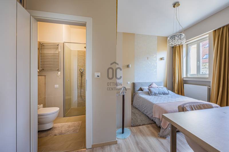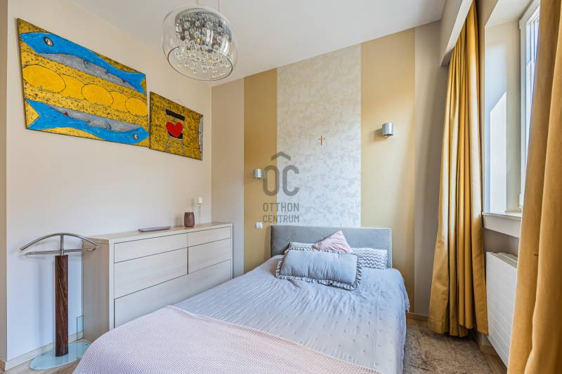 Ez nem csupán egy lakás, hanem egy életstílus. Tágas, átlátható terek, egyedi elrendezés jellemzi ezt a 89 m2-es luxus lakást, mely hatalmas ablakainak és remek fekvésének köszönhetően egész nap fényárban úszik!Elosztása kiváló. Hatalmas, amerikai konyhás, étkezős nappali, és két hálószoba található benne, melyekhez 1-1 privát fürdőszoba tartozik. Az előszobából egy külön vendégmosdó is nyílik, és egy rendkívül praktikus háztartási helyiség is kialakítára került. A lakás különlegessége a hangulatos erkély, ahonnan egy kellemes italt kortyolgatva élvezhetjük a belváros nyüzsgését. Az ingatlan egyedi tervezésének köszönhetően egy igazán különleges otthon, ahol a modern életstílus és a klasszikus értékek találkoznak. A lakás egy 1934-ben épült bauhaus ház 4. emeletén található. A műemelék épület kiváló állapotú kívül és belül egyaránt. A lakást jelenlegi tulajdonosa néhány éve teljesen felújította, saját ízlésére szabta. Kiváló minőségű fa nyílászárók, prémium burkolatok és szaniterek, egyedi fűtőtestek és klíma, minden hangulatnak megfelelő világítás, elegáns, gépesített konyha, egyedi design jellemzi. Ide az új tulajdonosnak csak beköltöznie kell.Elhelyzkedése kiváló. Lipótváros a belváros egyik legkedveltebb része, amely nemcsak központi elhelyezkedése, hanem kiváló ellátottsága miatt vonzó. A környéken számos étterem, kávézó, szórakozóhely, színház és bolt található, így minden, ami az igazi belvárosi élethez kell, egy karnyújtásnyira elérhető. Ha Ön egy igazán egyedi, kényelmes, mégis elegáns otthonra vágyik, ne habozzon! Jöjjön és nézze meg még ma! Ez a lakás tényleg olyan, mint a képen!