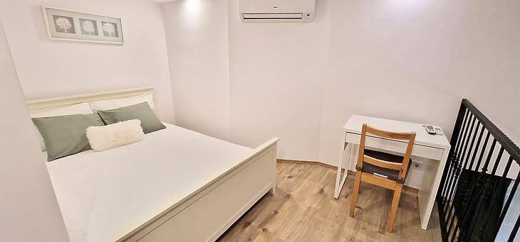 BELVÁROSI LAKÁS KIADÓ A KIRÁLY UTCÁBAN – IDEÁLIS EGYETEMISTÁKNAKBudapest belvárosában, kiváló közlekedés mellett, egy csendes, rendezett klasszikus épületben kiadó egy 115 m²-es, világos, kétszintes lakás, amely kifejezetten ideális egyetemisták vagy baráti társaságok számára.A lakás kiváló elosztásának köszönhetően 4 különnyíló hálószobával rendelkezik, mindegyik saját fürdőszobával, így minden lakó számára biztosított a teljes privát tér. Két szoba galériás fekvőrésszel kialakított, míg a másik két háló a felső szinten található.A lakásban tágas, különálló nappali és egy teljesen felszerelt, külön konyha is helyet kapott, így a közös terek kényelmesen használhatók anélkül, hogy zavarnák egymást a lakók. A háztartási helyiség további praktikusságot biztosít a mindennapokhoz.A lakás minden hálószobája klimatizált, a fűtés modern elektromos panelekkel megoldott.Bérleti díj: 1600 EUR / hóKözös költség: 30.000 Ft (7.500 Ft / fő)Rezsi: kb. 80.000 Ft (20.000 Ft / fő)Azonnal költözhető 2 havi kaució és tárgyhavi bérleti díj,valamint a közjegyzői költség fele ellenében.Kisállat tartása és a dohányzás a lakásban nem megengedett! Ideális választás, ha együtt költöznétek, de fontos számotokra a saját fürdő és a jól elkülönülő életterek. Az M1-es metró (Vörösmarty utca, Kodály körönd), a 4-6-os villamos, valamint több troli és buszmegálló néhány perc sétával elérhető, így a város bármely pontja gyorsan megközelíthető.