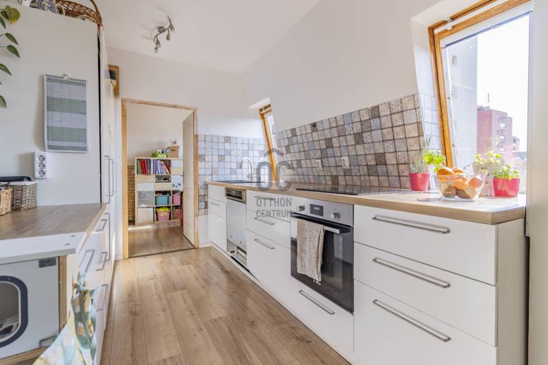 Nagycsaládosok figyelem!Igazán különleges ingatlan keresi új tulajdonosát a Lövölde utcában! Egy meglévő panelépületre 2001-ben téglából lett ráépítve ez a tágas, nappali+3 szobás lakás. A tudatos tervezésnek köszönhetően jól elkülönül a nappali élettér az éjszakai pihenéstől.A lakás alsó szintjén a tágas, napfényes nappali-étkező, a konyha és egy zuhanyzós fürdőszoba lett kialakítva wc-vel. Ezeken kívül a lépcső alatti tároló rengeteg dolgot el tud rejteni.A kényelmes lépcsőn keresztül jutunk az emeletre, ahol a 3 világos, ideális méretű hálószoba és a meleg hangulatú sarokkádas fürdőszoba található meg.A lakásban réz villanyvezetékek vannak, a vízvezetékek pedig műanyagok. A nyílászárók 3 rétegű üveggel szereltek, a fűtésről gáz cirkó kazán gondoskodik radiátoros hőleadással. A nyári melegben a klíma enyhíti a hőséget. A meleg vizet gázbojler szolgáltatja.A lakás igazán jó választás annak, aki szereti a napfényes, tágas tereket és valami igazán különlegesre vágyik, A tetőtéri ablakoknak köszönhetően az ingatlan bármely napszakban világos, otthonos.Az infrastruktúra kiváló: Interspar,óvoda, iskola, orvosi rendelő, gyógyszertár és kisebb szolgáltatások mindössze néhány perc sétára vannak. A környék csendes, mégis közel a belvároshoz, a vasútállomáshoz és a buszmegállóhoz.Tömegközlekedéssel könnyen elérhető, autóval pedig parkolás közvetlenül a ház előtt lehetséges.Kérdése van? Szeretné megnézni személyesen? Hívjon most!Ne maradjon le róla, nézze meg mielőtt elkel!Ha a vásárláshoz a jelenlegi ingatlanját kell eladnia, akkor abban is szívesen együttműködöm Önnel!Az ingatlan vásárlásához a CSOK PLUSZ és az OTTHON START PROGRAM lakáshitel is igénybevehető! Amennyiben hitelre van szüksége, teljes körű és díjmentes hitel ügyintézéssel állunk rendelkezésére!Ez az ingatlan a \"Felező csomag\" megbízási portfólióhoz tartozik. Részletek az Otthon Centrum weboldalán.