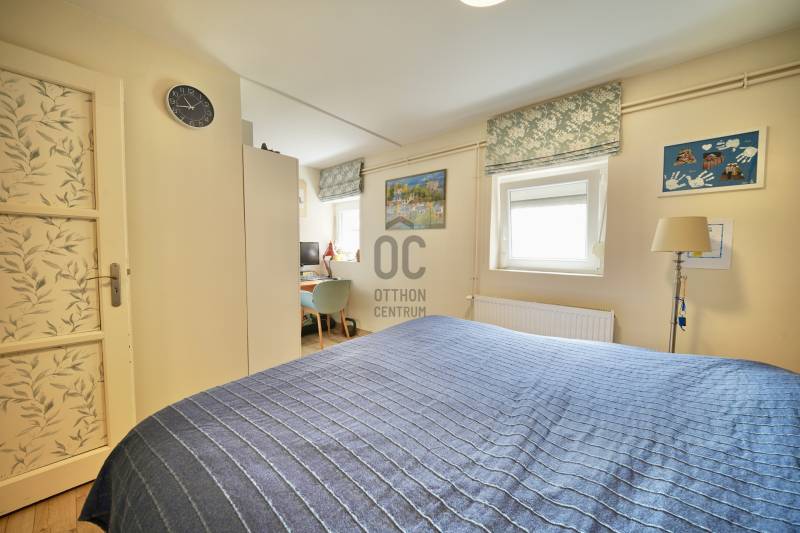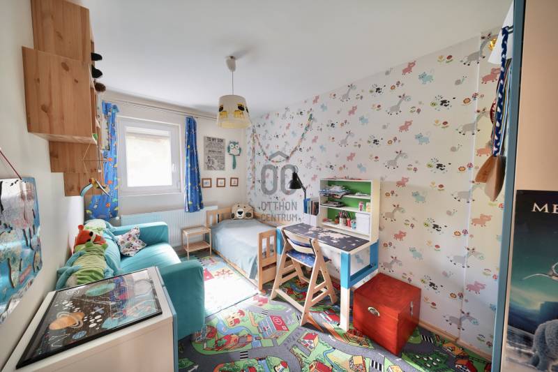 Családbarát, kertkapcsolatos lakás eladó Budaörsön!Budaörs egyik legkedveltebb, központ közeli, mégis nyugodt, családi házas övezetében kínálunk megvételre egy igazán otthonos, jó állapotú lakást.Az ingatlan egy háromszintes ház - szintenként 1-1 lakás - földszintjén helyezkedik el, így biztosított a nyugodt, intim lakókörnyezet.A lakás egyik legnagyobb előnye a közvetlen kertkapcsolat: a tágas, fedett teraszról közvetlenül a gondozott kertbe léphetünk, amely ideális helyszíne lehet családi és baráti összejöveteleknek, sütögetésnek vagy a gyerekek önfeledt játékának. A kertben homokozó, hinta és egyéb játék lehetőségek is adottak, így a legkisebbek számára is igazi paradicsom.Az ingatlanhoz saját, külön bejáratú kertkapu tartozik, amely tovább növeli a privát szféra érzetét. Emellett rendelkezésre áll egy automata kapuval ellátott saját gépkocsi beálló, valamint egy saját kültéri tároló is. További tárolási lehetőséget biztosít a három lakás által közösen használt pincehelyiség.A lakás elrendezése kiváló:- 3 külön nyíló szoba- Tágas amerikai konyhás nappali - étkező- Fürdőszoba WC-vel, valamint egy további, különálló mellékhelyiségA nagy közösségi térként funkcionáló nappali és az egybenyitott konyha-étkező ideális teret biztosít családi élethez, gyermekek játékához vagy akár nagyobb baráti összejövetelekhez is.Az ingatlan néhány évvel ezelőtt teljes körű felújításon esett át - a teljes elektromos hálózat cseréjétől kedve a konyhabútoron-, a burkolatokon-, és a nyílászárókig minden - ennek köszönhetően remek műszaki-, és esztétikai állapotban van.További előnyök:- Az ablakok redőnnyel és szúnyoghálóval felszereltek- A gazdaságos fenntartást a teljes külső hőszigetelés és a kiváló üzemű cirko biztosítja- A beállón túl további parkolási lehetőség a kertkapu előtt kialakított helyeken- Kiépített risztórendszerEz a lakás tökéletes választás mindazok számára, akik szeretnék ötvözni a központ közelségét a csendes, kertvárosi élet nyugalmával.Ha egy valóban szerethető, otthont keres Budaörsön, ezt az ingatlant érdemes személyesen is megtekinteni!Ez az ingatlan a \"Felező csomag\" megbízási portfólióhoz tartozik. Részletek az Otthon Centrum weboldalán.
