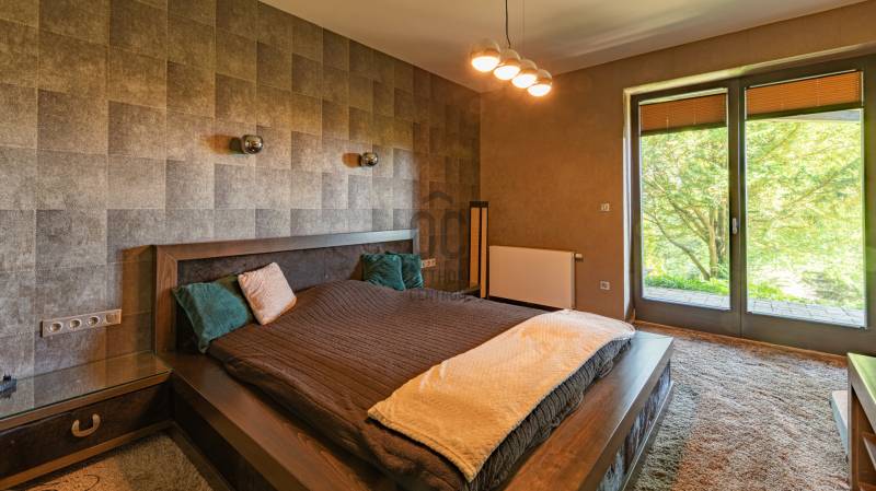 Ez a kivételes, 441 nm-es használt családi ház Nagykovácsiban, Pest vármegyében, a legnagyobb kényelmet és eleganciát kínálja egy exkluzív otthonra vágyó család számára. Az ingatlan egyedülálló tervezésének köszönhetően a tágas nappali és a világos, nagy belmagasságú szobák mind a modern életstílus, mind a családi együttlétek tökéletes színterévé válnak illetve szinten található még egy számos lehetőséggel bíró, liftes helyiség ami lehet akár garázs vagy hobby szoba is . A házban megtalálható 8 szoba és 3 fürdőszoba nemcsak a családtagok, hanem a vendégek kényelmét is szolgálja, így ideális választás lehet befektetési céllal is. A prémium kivitelezésű ingatlan számos modern kényelmi funkcióval rendelkezik, mint például beépített bútorok és szekrények, LED hangulatvilágítás, komplett grillező és kemence a teraszon stb. A házhoz tartozó három garázs férőhely biztosítja a járművek kényelmes tárolását, míg a rendezett 1504nm-es kert és az automata öntözőrendszer gondoskodik arról, hogy a zöld terület mindig ápolt és szép legyen. A kertben található medence és szauna pedig a pihenés és a kikapcsolódás tökéletes helyszínét nyújtja. Az ingatlan csendes, felkapott környéken helyezkedik el, amely nemcsak a nyugalom szigete, hanem a biztonságos életvitel szempontjából is ideális választás. A környék kiváló közlekedési lehetőségekkel rendelkezik, így az autóval közlekedők számára könnyen elérhetőek a főbb útvonalak, míg a tömegközlekedés is jól kiépített, lehetővé téve a gyors és kényelmes bejutást a fővárosba. A közelben található iskolák, boltok és egyéb szolgáltatások pedig tovább növelik az ingatlan vonzerejét. Ez a modern, kandallós, világos és tágas családi ház nemcsak egy otthon, hanem egy életstílus megtestesítője. Az ingatlan állapota kiváló, fűtése gáz (cirko) rendszerrel, hűtése klímával megoldott. A biztonsági ajtó és a videókaputelefon, valamint a riasztórendszer garantálja a lakók biztonságát és nyugalmát. A jelenleg divatos de elcsépelt stílustól eltérő, egyedi megjelenést és valóban élhető, kimondottan harmonikus otthont keresőket azonnal elcsábítja a telekről és magából a házból élvezhető meghitt nyugalom, intimitás és elképesztő panoráma, a mögöttünk lévő erdő közelsége pedig azonnal lenyűgözi.Alapvető műszaki tartalom: :-konyha,beépített Siemens gépekkel-beépített szekrények-központi porszívó-WOLF fűtési rendszer melegvíz kollektorokkal, fa tüzelésű kazán a rendszeren belül–kandalló-5 tonnás auto emelő lift-SLV márkájú LED-es lámpatestek az egész házban-elektromosan mozgatható tetőtéri ablakok és azokon szintén elektromos mozgatású alumínium redőnyök-táv felügyeleti riasztó és kamera rendszer-konditerem, infra szauna Ha Ön is szeretne részese lenni ennek az egyedi lehetőségnek, ne habozzon feltenni kérdéseit, hiszen bármilyen információval szívesen állok rendelkezésére!