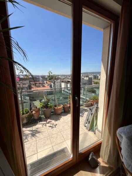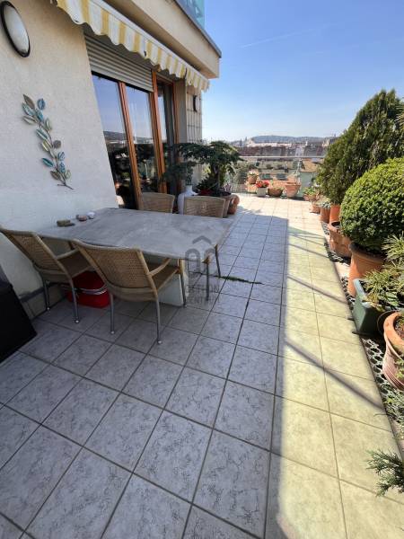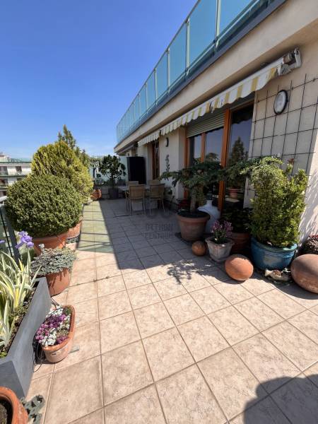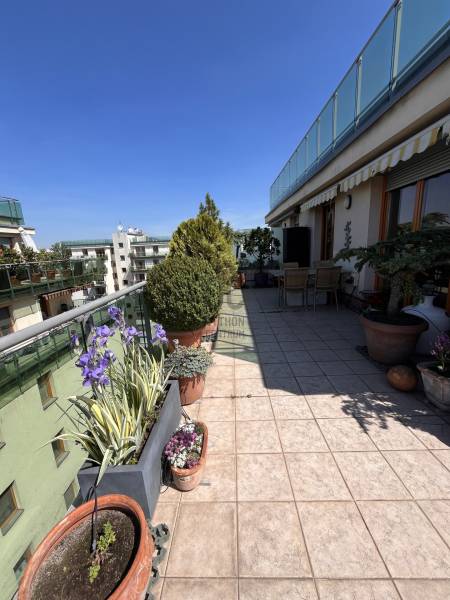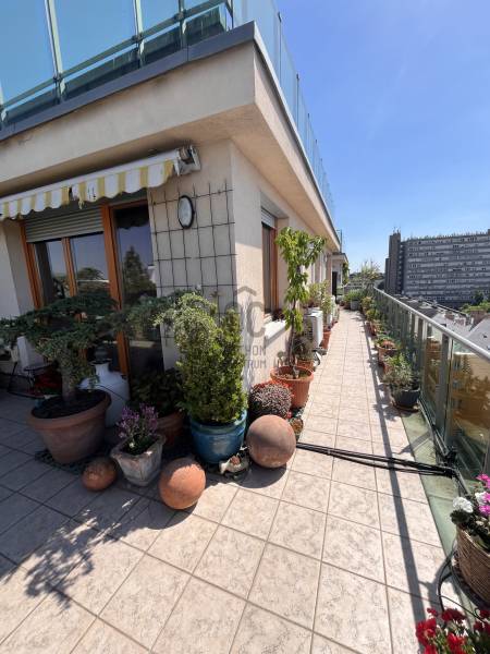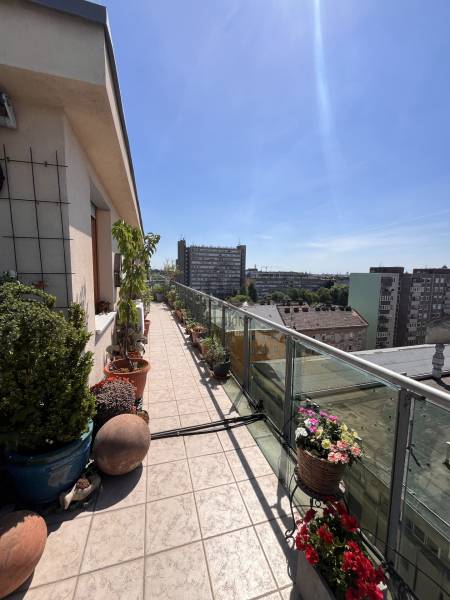 XIII. Újlipótváros - Cézár HázakLegfelső emeleten, a IX. emeleten eladóvá vált egy nagy teraszos, panorámás lakásIngatlan 3 szobás, nappali + 2 szoba, dupla komfortosAlapterülete a tulajdoni lapon: 90nmHasznos alapterület: 68nm + 45nm teraszFűtés: házközponti egyedi mérésselKözös költség 395 Ft/nm/hó = 35.550.- Ft: 0-24 portaszolgálat, lift, felújítási alap, és az egyéb kötelező költségek (takarítás, szemét .. )Víz, fűtés és villany egyedi, saját mérőórákkal3 db Klíma van felszerelveBelmagasság: 270cmTeraszra ki lett vezetve a vízMegtekintés előre egyeztetett időpontokban, hétköznaponként