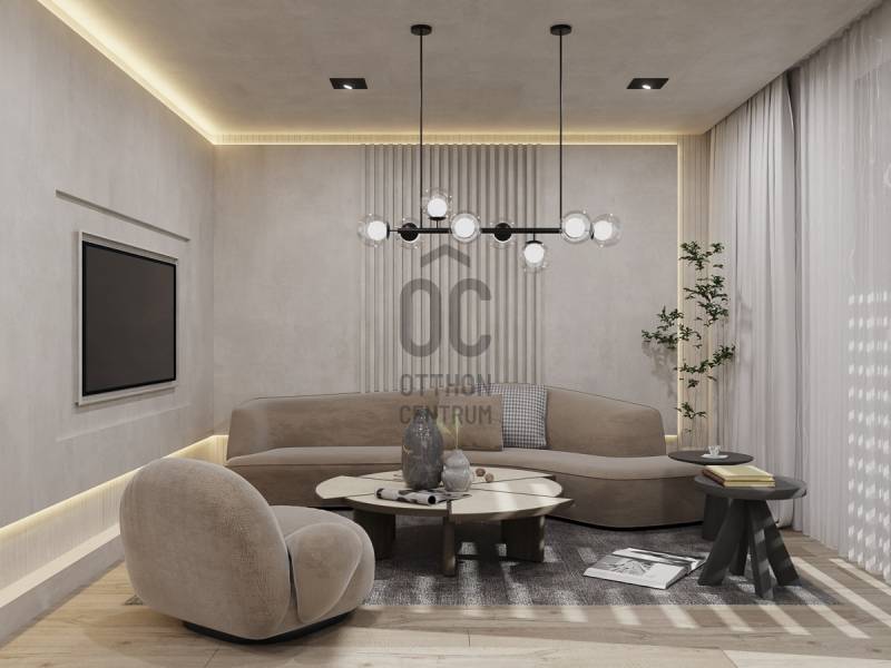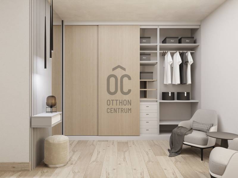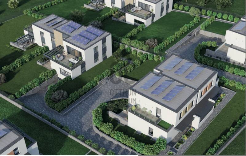 Aranyhegy egyik legszebb részén, a csendes Almáskert utcában kínálunk eladásra egy vadonatúj, panorámás, luxus színvonalú ikerházat.Az ingatlan 121,85 m²-es, két szinten elosztva, összesen 5 szobával és három terasszal rendelkezik. A tágas és világos tereket a délnyugati tájolás és a Hármashatár-hegyre nyíló kilátás teszi igazán különlegessé.Főbb jellemzők:Alapterület: 100 m² ( bruttó 121,85 m² ) (Földszint: 71,45 m² + Emelet: 50,40 m²)Helyiségek száma: 5 szoba, 2 fürdőszoba, amerikai konyhás nappali, előszobaTeraszok: 3 db (összesen több mint 40 m²)Kert: 300 m2Kilátás: Panorámás, zöldövezetiKomfort fokozat: LuxusFűtés: Modern levegő-víz hőszivattyús rendszer padlófűtéssel és fan-coil hűtésselFontosabb műszaki adatok:Szerkezet: Porotherm X-therm falazat, monolit vasbeton födémek, 15 cm hőszigetelésTető: Lapos tető, modern víz- és hőszigeteléssel (Bauder rendszer)Nyílászárók: Háromrétegű, hőszigetelt műanyag ablakok (Ug=0,5 W/m²K), motoros alumínium redőnyökBurkolatok: Prémium greslapok, laminált parketta vagy vinyl padlóFürdők: Magas minőségű szaniterek, vízzáró szigetelésKert: Parkosított kert, térkövezett autóbeállóEnergiahatékonyság: Hőszivattyús fűtés, napelem előkészítésAz ikerházhoz 2 db teremgarázs hely tartozik, amelyek külön megvásárolhatók, darabonként 10 millió Ft-ért. Az ingatlanhoz ajándék tároló (12,6 m²) és 1 db gépkocsi-beálló is jár.Ez az otthon ideális választás mindazoknak, akik értékelik a csendes, zöld környezetet, ugyanakkor fontos számukra a modern, energiatakarékos műszaki tartalom és a magas minőség.Egyéb:A ház körül teljes szivárgó („drén”) rendszer kerül kiépítésre.A csapadékvíz tárolására szolgáló zárt tartály kerül beépítésre.Opció: locsoló rendszerrel történő integrációval.vételár nem tartalmazza:- beépített szekrények, konyhabútor és azok beszerelési költségét- világító testek, lámpák és azok beszerelési költségét- beépített háztartási gépeketA környék ideális a pihenésre, feltöltődésre. A zöld, frisslevegős, madárcsicsergős környezetnek köszönhetően magas minőségű életmódot élhetünk. Pár perc sétatávolságra található vonat és buszmegálló.Egyedi igényekre szabott lakáshitelekkel állunk rendelkezésére. Bankfüggetlen hitelcentrumunk az országban elérhető összes bank és hitelintézet ajánlatát versenyezteti az Ön számára díjmentesen. Munkatársaink nagy szakmai tapasztalattal várják Önt az előre egyeztetett időpontban akár a normál munkaidő után is.Bővebb információért és a megtekintéssel kapcsolatban hívjon bizalommal!