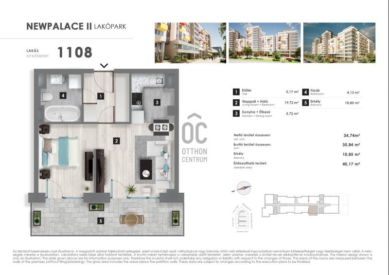 Projekt bemutatásaNew Palace II. ütemA New Palace a XIII. kerület csendes részén épül. A megújult kertvárosias környezet a pesti oldal egyik legkedveltebb részei közé tartozik, az itt élők egyszerre élvezhetik a csöndes kis utcák nyugalmát és a belváros közelségét.A társasház különleges, extravagáns homlokzatával egyedi fiatalos dizájnjával, kiemelkedik a környező épületek közül és ezáltal lesz majd sokáig a környék ismert és meghatározó tájékozódási pontja. A már eddig is komoly fejlődésen és megújuláson átesett városrész a projekt megvalósulásával beírja magát a kerület új városrészei közé.A földszint + 12 emelet magas épületet elegáns, kertépítők által tervezet parkok veszik körül, megreformálva a társasház környezetét is. A zárt, csak a társasház lakói által megközelíthető udvaron fákkal, cserjékkel tarkított, füvesített zöldkert kerül kialakításra.A lakások két elegáns, egymástól elkülönülő lobbyn keresztül közelíthetőek meg, lépcsőházanként két-két lifttel. A lakáskínálatban az egyszobás lakástól egészen a négyszobásig mindenféle elosztású megoldás megtalálható, a kínálatban alig van két egyforma lakás. Minden lakás rendelkezik erkéllyel vagy terasszal, a földszinti és néhány exkluzív emeleti lakás pedig, intenzív zöldtetővel, saját kertrésszel.Figyelembe véve a jövő elvárásait, a társasház modern, környezetbarát, mennyezeti hűtő, -fűtő rendszerrel ellátott.Vevőinknek lehetőségük nyílik arra is, hogy megvásárolt otthonukat az utolsó részletig személyre szabhassák: módosítással élhetnek otthonuk elosztása tekintetében is, továbbá széles kollekcióból választhatnak meleg- és hideg burkolatokat. Az alapáras burkolatokon felül, elérhetőek feláras termékek is, mely biztosítja, hogy személyiségük otthonukban is vissza tükröződhessen.Az infrastruktúra is magáért beszél: a közeli Váci út kiváló közlekedése és bevásárlási lehetőségei, a megújult 3-as metró Gyöngyösi utcai megállója rövid sétával elérhető, hasonlóan az idilli hangulatú Gyöngyösi sétányhoz, mely a kerület egyik legkedveltebb részei közé tartozik. Szintén pár perc sétatávolságra a folyamatosan megújuló és minden igényt kielégítő Duna Pláza bevásárlóközpont (benne: SPAR, gyógyszertár, Rossmann, DM, Médiamarkt, tisztító, fodrászatok, virágbolt, Libri könyvesbolt, papír-írószerbolt és számos ruházati bolt. Kényelmesen megoldható a napi fogyasztási cikkek beszerzése is a nap bármely órájában a közvetlen közelben lévő Tesco áruházban és az üzletsoron lévő boltokban. A lakópark tágabb vonzáskörzetében de még mindig elérhető távolságban találjuk Újpest-központot, a Népszigetet és az Újpest vasútállomást.Irodánkban a legtöbb XIII. kerületi beruházás lakásai elérhetőek ügyfeleink számára.A jelen adatok tájékoztató jellegűek, ezért a Beruházó (sem a hirdető) azok változásával, vagy bármely attól való eltéréssel kapcsolatban semmilyen kötelezettséget, vagy felelősséget nem vállal.Az alaprajzokon ábrázolt berendezési tárgyak és bútorok, a burkolatok megjelenése nem képezi a szerződés tárgyát. A pontos felszereltségről a műszaki leírásban olvashat bővebben.Az aktuális lakáskínálatról és árakról érdeklődjön telefonon!