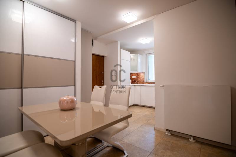 Új tulajdonosát keresi ez a gyönyörű, tágas és világos lakás a 6. kerületbenAz ingatlan 2016-ban készült el, egy konyha-ékező-közlekedő, egy nagy nappali, nagy hálószoba, egy félszoba és egy fürdő, külön wc alkotja.Tulajdoni lapon 76.83 nm-es, valóságban kicsit nagyobb.5. emeleti, így mindig fényes és világos, valamint nagyon csendes.Fűtése cirkó, hűtéséről légkondik gondoskodnak.Tájolása DNy-i, utcai nézetű, a konyha és étkező a belső udvar felé néz, így könnyen szellőztethető.Minőségi, olasz burkolatokat használtak a fürdőszobában, konyhában és előszobában, és fa parketta a nappaliban, hálószobában. Magas színvonalú hang- és hőszigetelés, korszerű hőszigetelő üvegezésű nyílászárók, prémium szaniterek és csaptelepek kerültek beépítésre a lakás kialakítása során.Közös költség 32.003 FtJelenleg a 2 felső szinten található tetőtéri lakások osztatlan közös tulajdonúak, ( természetesen minden mérőóra külön van) ezért csak készpénzre vásárolható az ingatlan. Azonban az Alapító okirat és albetétesítés idénre van tervbevéve.Ne habozzon megnézni, mert amilyen magasan van az ingatlan, annyira alacsonyan van az ára:)Hívjon még ma, jöjjön el, nézze meg, és jöjjön ide haza!7791-520-741-8888-289471-9718319-1111. .kai-ra lo-ma ti-va.