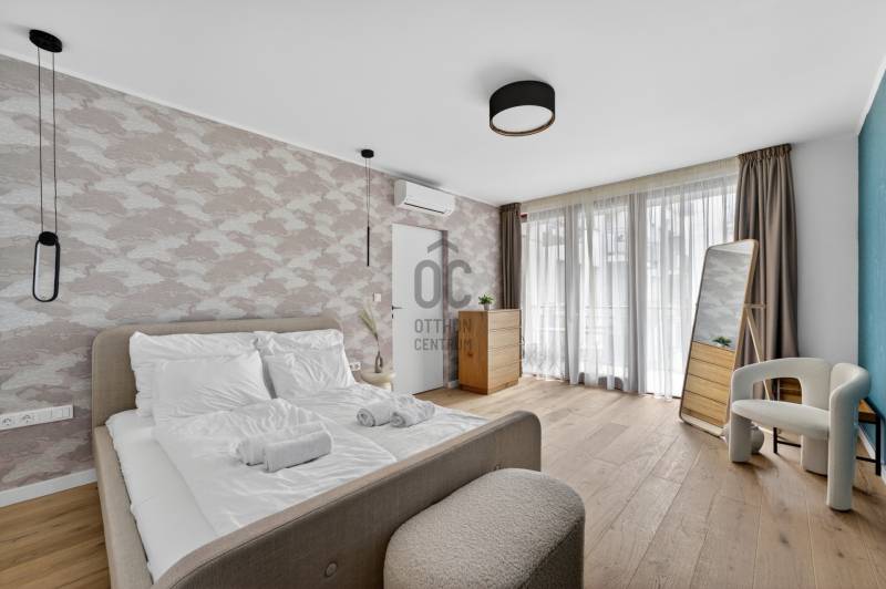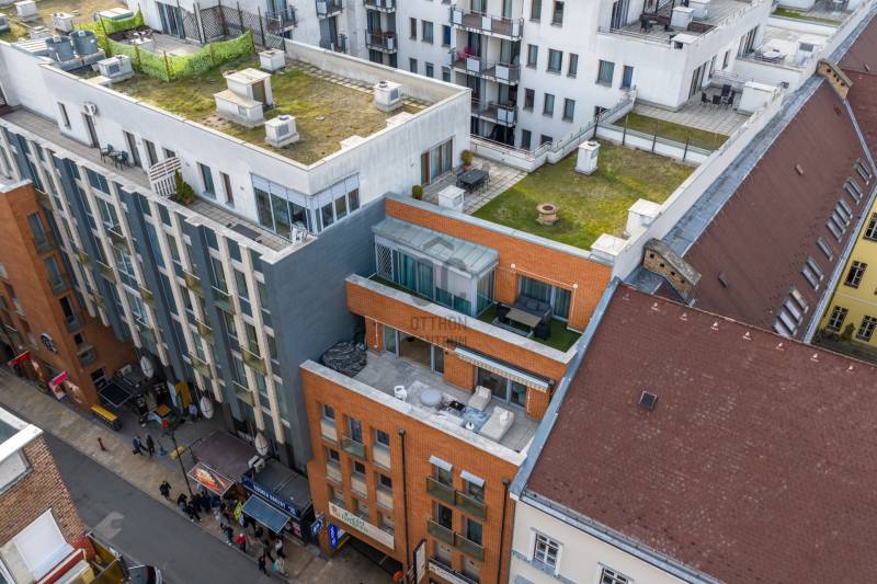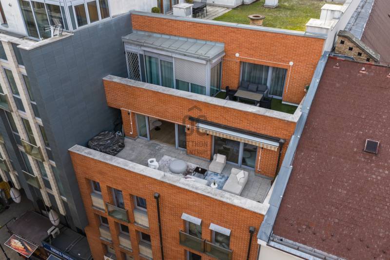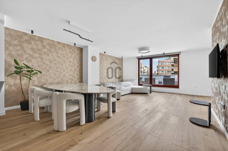 Olyan penthouse, ahol a 40 m²-es terasz valódi élettér. Jacuzzi, kültéri bútorok, zavartalan nyugalom – miközben pár lépésre vagy az Andrássy úttól.Bent egy 65m2-es amerikai konyhás nappali fogad: legyen szó baráti összejövetelről, vagy meghitt családi összejövetelről: itt egy nagyobb társaság kényelmesen elfér.A lakás számokban:• 176 m² összterület• 131 m² belső lakótér• 40 m² privát terasz jacuzzival• 3 hálószoba• 2 fürdőszoba• 2026-ban teljes körű, garanciális felújítás• Teljes bútorzat és beépített bútorok is a vételár része• 3 parkolóhely opcionálisan vásárolható pluszbanAz épület:2008-ban épült24/7 portaszolgálat és biztonságKarbantartott, prémium szintű házMélygarázs nagy autók számára is kényelmes méretekkelLift, frissen felújított hotel szintű közös területekMire ideális?Saját használatra, ha fontos a belvárosi presztízs és a kültéri élettérCéges reprezentációraNagykövetségi vagy corporate bérbeadásraStabil, évi ~42.000 EUR bevételt termelő befektetéskéntMiért ritka?Belváros + ekkora terasz + jacuzzi + 3 háló + parkolók + újszerű ház.Ez a kombináció gyakorlatilag nem jön szembe a piacon.Ha olyan ingatlant keresel, ahol a terasz nemcsak „jó, ha van”, hanem a lakás fő attrakciója, akkor ezt érdemes élőben megnézni.