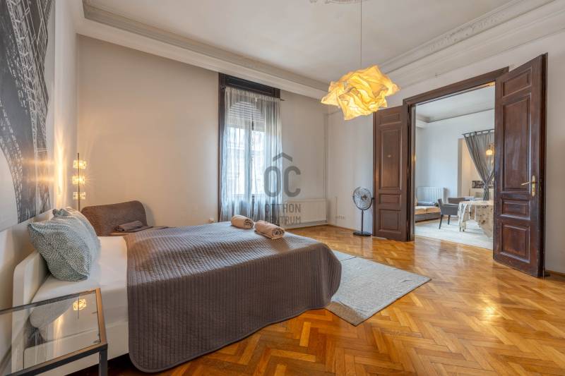 Budapest V. kerületének egyik legpatinásabb részén, a Sörház utcában kínálunk megvételre egy valóságban 189 m² (tulajdoni lapon 174 m²-es), 4 szobás, 3 fürdőszobás, liftes társasházban található, kiváló adottságú nagypolgári lakást, amely a klasszikus eleganciát ötvözi a tágas, jól alakítható terekkel.A lakás előtti függő folyosón kialakítható egy intim 8 m²-es teraszrész.Az ingatlan egyik legkiemelkedőbb jellemzője a lenyűgöző, 4 méteres belmagasság, amely páratlan térérzetet és világosságot biztosít. A lakás elosztása kiváló: az 4 tágas szoba ( az ötödiket jelenleg átalakították fürdőszobának) ideális családi otthonnak, irodának vagy akár reprezentatív célokra is.A lakás elegáns megjelenésű, igényes kialakítású, nagy terekkel rendelkezik, amelyek számos berendezési és átalakítási lehetőséget kínálnak. Az utcai nézetű helyiségek világosak, a keleti tájolás pedig kellemes természetes fényt biztosít a nap jelentős részében.A lakáshoz tartozik egy 8,16 m²-es terasz, amely ritkaságnak számít a belvárosi ingatlanok között, és ideális helyszín egy nyugodt kávézáshoz vagy pihenéshez.Az épület liftes, rendezett állapotú, amely tovább növeli a komfortérzetet. Az ingatlan per- és tehermentes, így azonnal költözhető, ami különösen nagy előnyt jelent.A lokáció kivételes: Belváros Budapest egyik legértékállóbb és legkeresettebb része, ahol minden karnyújtásnyira elérhető – éttermek, kávézók, üzletek, kulturális intézmények, valamint kiváló közlekedési kapcsolatok. A Duna-part, sétálóutcák és a város ikonikus helyszínei mind néhány perc alatt megközelíthetők.Ez az ingatlan ideális választás mindazok számára, akik egy nagyvonalú, elegáns, kiváló elhelyezkedésű lakást keresnek Budapest szívében – akár saját célra, akár befektetésként.Egyedi igényekre szabott lakáshitelekkel állunk rendelkezésére. Bankfüggetlen Hitelcentrumunk az országban elérhető összes bank és hitelintézet ajánlatát versenyezteti az Ön számára díjmentesen. Munkatársaink nagy szakmai tapasztalattal, teljes körű CSOK Plusz és Otthon Start Program ügyintézéssel várják Önt előre egyeztetett időpontban, akár a normál munkaidő után is.