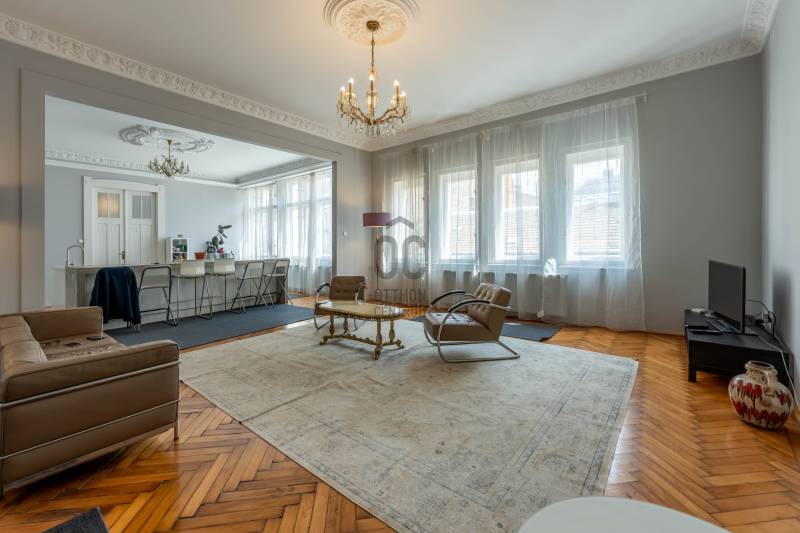 Budapest VI. kerületének egyik legpatinásabb részén, Belső-Terézvárosban, a Zichy Jenő utcában, a Szent István-bazilika és az Operaház közvetlen közelében kínálunk megvételre egy 175 m²-es, 5 szobás, 3 fürdőszobás, 3. emeleti, kiváló állapotú társasházi lakást, amely tökéletesen ötvözi a klasszikus polgári eleganciát a modern komforttal.Az ingatlan egyik legfőbb értéke a 3 métert meghaladó belmagasság, amely rendkívül tágas, világos tereket eredményez. A lakás ízlésesen berendezett, elegáns bútorokkal, amelyek harmonikusan illeszkednek a nagypolgári hangulathoz.Összesen 5 szoba és 3 fürdőszoba található, így akár nagyobb család számára, akár befektetési célra (pl. több lakrészes hasznosításra) is kiváló lehetőséget kínál.A lakás központi része egy impozáns, 63 m²-es nappali-konyha együttes, amely egy légtérben helyezkedik el, így ideális helyszínt biztosít a mindennapi élethez és a vendéglátáshoz. A nappaliból, illetve a konyha felől két nagyméretű hálószoba nyílik, mindkettő saját fürdőszobával, ami kiemelkedő komfortot nyújt. Három szoba utcai nézetű, így a lakás világos és élhető terekkel rendelkezik.Körülbelül 10 évvel ezelőtt teljes felújításon esett át, azóta folyamatosan karbantartott, így jelenlegi állapotában is kiváló.Az épület külső homlokzata felújított, a belső állapota jó, rendezett. 1/1 tulajdon, per és tehermentes, azonnal költözhető !Belső-Terézváros Budapest egyik legpezsgőbb és legértékállóbb városrésze, ahol a történelmi hangulat és a modern városi élet tökéletesen találkozik. A környéken számtalan étterem, kávézó, kulturális intézmény és szolgáltatás található, miközben a belváros minden fontos pontja gyalogosan elérhető. Kiváló közlekedés, elegáns környezet és magas presztízs jellemzi a lokációt.Ez az ingatlan ideális választás mindazok számára, akik egy nagyméretű, elegáns, kiváló elhelyezkedésű polgári lakást keresnek Budapest szívében.Igény esetén bankfüggetlen hitelügyintézéssel, teljes körű CSOK Plusz és Otthon Start Program ügyintézéssel állunk rendelkezésére. Bővebb információért és a megtekintéssel kapcsolatban hívjon bizalommal!
