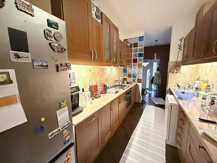 XVI. KERÜLETBEN, RÁKOSSZENTMIHÁLYON ELADÓ EGY 4 SZOBÁS, 100M2-ES IKERHÁZ, 612 M2-ES TELEKKEL, GARÁZZSAL ÉS SZUTERÉN RÉSSZEL.A KÖRNYÉK:XVI. kerület, családi házas övezetben, csendes utcában kiváló tömegközlekedésnél, közeli bevásárlási lehetőségeknél.AZ ÉPÜLET JELLEMZŐI:A földszint alapterülete 100 m², míg a szuterén további 80 m²-t biztosít, a telek mérete pedig 612 m². Az ingatlan elrendezése praktikus: három szoba, egy hall, konyha és egy nappali található benne, emellett fürdőszoba, mosókonyha és lépcsőház is rendelkezésre áll. A ház cseréptetővel fedett, elektromos hálózata rézvezetékes, 3×16 amperes teljesítménnyel. A fűtést egy Bosch kondenzációs kazán biztosítja, amely szívó–fújó rendszerű (zárt égésterű), így korszerű és energiatakarékos megoldást nyújt. A két konyhának köszönhetően rezsicsökkentett kedvezmény vehető igénybe, a földszinti konyha pedig gépesített, gáztűzhellyel, elektromos sütővel és mosogatógéppel felszerelt. A burkolatok tekintetében a szobák laminált parkettások, míg a többi helyiség kőburkolatot kapott. A nyílászárók részben fából készültek, részben műanyag, hőszigetelt üvegezéssel ellátottak. A nappaliban padlófűtés biztosítja a komfortot, a homlokzat pedig 5 cm-es hungarocell szigeteléssel rendelkezik.A szuterénben garázs és több kiszolgálóhelyiség kapott helyet, valamint a nappali alatt egy külön pince is található, amely további tárolási lehetőséget biztosít. A kertben egy 20 m²-es, betonalapra épült, alápincézett melléképület és egy hangulatos terasz is helyet kapott.PARKOLÁS: Garázsban, illetve a telken belül egy fedett autóbeálló alatt.KÖZLEKEDÉS:A közelben pár perc sétára közlekedik a 31-es, 92-es, 92A, 130-as, 144-es, 174-es, 244-es 277-es, 931-es, 996-os.FINANSZÍROZÁS:Hitel igénylés esetén, irodánk szívesen áll INGYENES TANÁCSADÁSSAL rendelkezésére!IRÁNYÁR: 129,9 M FtVEVŐINK RÉSZÉRE A KÖZVETÍTÉS DÍJTALAN!!A hirdetésben szereplő adatok tájékoztatás jellegűek!