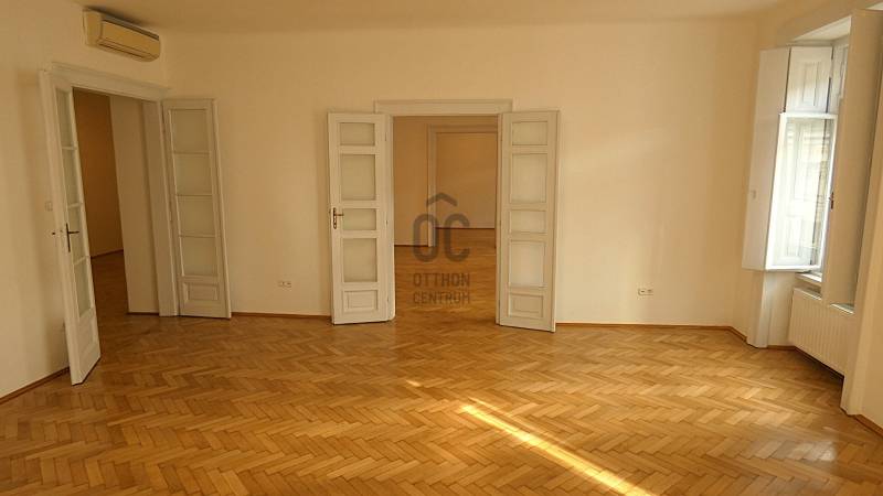 V. KER. CSENDES MELLÉKUTCA, SZÉP HÁZ, 4.e.-i JÓ ÁLLAPOTÚ 138 m2 LAKÁSV. Ker. LIPÓTVÁROS körzetében, CSENDES MELLÉKUTCÁBAN (átmenőforgalomtól mentes), kívül-belül SZÉP, 1930-as években épült LIFTES HÁZ 4. EMELETÉN kínálunk eladásra, egy 138 m2-es, 4 SZOBÁS, VILÁGOS, NY-i TÁJOLÁSÚ, KLIMATIZÁLT, KIÉPÍTETT SZÁMÍTÓGÉPES HÁLÓZATTAL RENDELKEZŐ, FRISSEN FELCSISZOLT PARKETTÁS, NAGYPOLGÁRI LAKÁST.Az alaprajzon megjelölt hall, és a 14,4 m2-es szoba egybe van nyitva, de ez egy válaszfallal visszaépíthető. AZ INGATLANT JELENLEG EGY NAGY MÚLTÚ, ÁLLAMI CÉG BÉRLI 700eFt/hó+Áfa ÖSSZEGÉRT, AKIK MARADNÁNAK HOSSZÚ TÁVRA.Külső nyílászárók: FELÚJÍTOTT TRIPLA ÜVEGEZÉSŰ, HŐSZIGETELT FA, Belső nyílászárók: EREDETI FELÚJÍTOTT FA Fűtés: gáz cirkó (ÚJ A KAZÁN), Belmagasság: 3,5 m. Közös költség: 30eFt/hó, mely tartalmazza a közös villany, kukaszállítás, lift, felújítási alap, valamint a közös képviselő költségeit is, + 11eFt/hó a felújítási alap. Vízóra van.Közlekedés: busz, metró, villamos néhány perc sétatávolságraTISZTELT ÉRDEKLŐDŐ!TÖBB MINT 20 ÉVE FOGLALKOZOM INGATLANOK ÉRTÉKESÍTÉSÉVEL MAGYARORSZÁG PIACVEZETŐ INGATLANKÖZVETÍTŐ HÁLÓZATÁNÁL, AZ OTTHON CENTRUMNÁL. AMENNYIBEN SZÁNDÉKÁBAN ÁLL INGATLANT ELADNI - A LEGRÖVIDEBB IDŐN BELÜL, GARANTÁLT JOGI, ÉS BANKI HÁTTÉRREL - KERESSEN BIZALOMMAL, HOGY EGY HELYSZÍNI FELMÉRÉST KÖVETŐ INGYENES ÉRTÉKMEGÁLLAPÍTÁS UTÁN, EGYÜTT TUDJUNK MŰKÖDNI AZ ÖN INGATLANÁNAK AZ ELADÁSÁBAN IS!