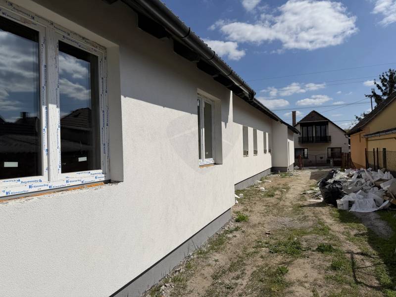 Az épület stabil vasbeton sávalapra épült, zsalukő lábazattal, két irányban vasalva. A fő teherhordó falak korszerű, 30 cm-es Porotherm téglából készültek, a válaszfalak 10 cm-es blokkból. A tetőszerkezet fa fedélszék, 35°-os nyeregtetővel, Terrán Zenith antracit cserépfedéssel.Szigetelés:* homlokzaton 12 cm hőszigetelés* lábazaton 8 cm XPS* födémen 20 cm üveggyapot* aljzatban lépésálló szigetelés + estrich rétegNyílászárók:* 3 rétegű üvegezésű műanyag ablakok és ajtók* szekcionált, motoros garázskapu* padlásfeljáró lépcső beépítve* belső ajtók bruttó 60.000 Ft/db értékig (7 db)Belső kialakítás:* gipszkarton mennyezet* glettelt, festett falak (2 réteg fehér)* fürdőben impregnált gipszkartonBurkolatok az árban:* hidegburkolat: max. 5.000 Ft/m² (falon ~2,1 m magasságig)* laminált padló: max. 4.000 Ft/m²Gépészet:* 10–11 kW-os hőszivattyú* padlófűtés + radiátoros hőleadás* szaniterek az alábbi értékhatárig: * kád/zuhany: 60.000 Ft/db * mosdó: 30.000 Ft/db * WC: 15.000 Ft/dbElektromos rendszer:* teljes vezetékezés kiépítve* 60 db szerelvény (kapcsoló, konnektor, kiállás)* konyhai elektromos tűzhely kiállás* fürdő/WC elszívás kiépítve* 3x10A teljesítményKülső munkák:* dryvit rendszer, színezett vakolat* vízelvezetés, szikkasztó kialakítása* tereprendezés alap szintenAmi NEM része az árnak:* redőnyök* csaptelepek* konyhabútor* klíma berendezés (csak kiállás)* riasztó rendszerAz ingatlan ideális választás családok számára, akik egy korszerű, energiatakarékos otthont keresnek nyugodt környezetben, jó közlekedési adottságokkal.Teljes körű ügyintézéssel, hiteltanácsadással és jogi háttérrel segítjük vásárlóinkat.Intor Ingatlan – Otthonok szakértője ?