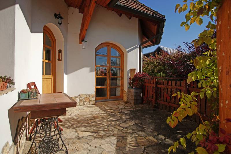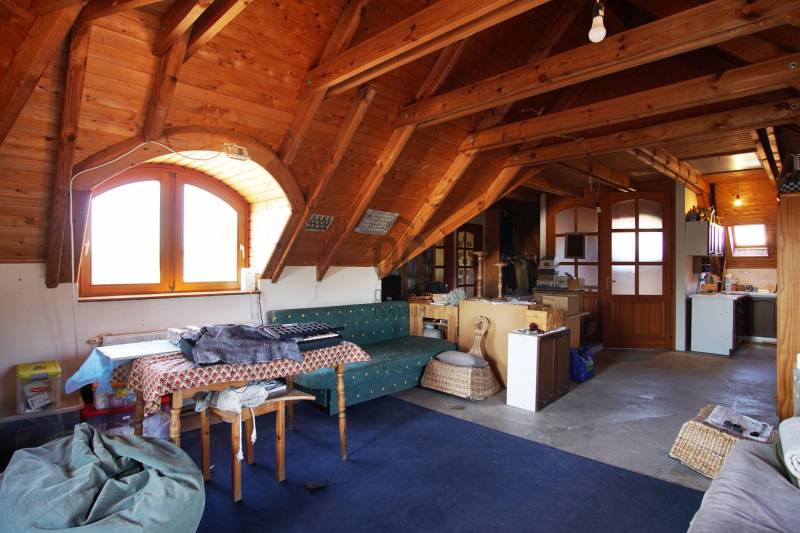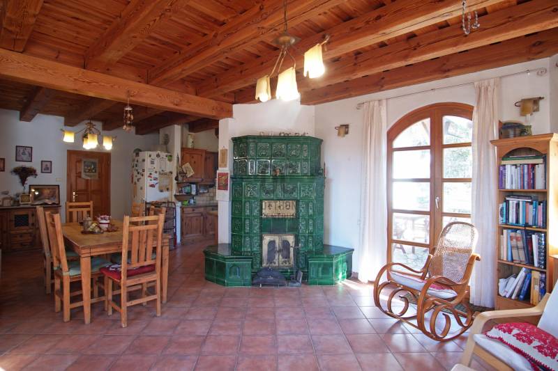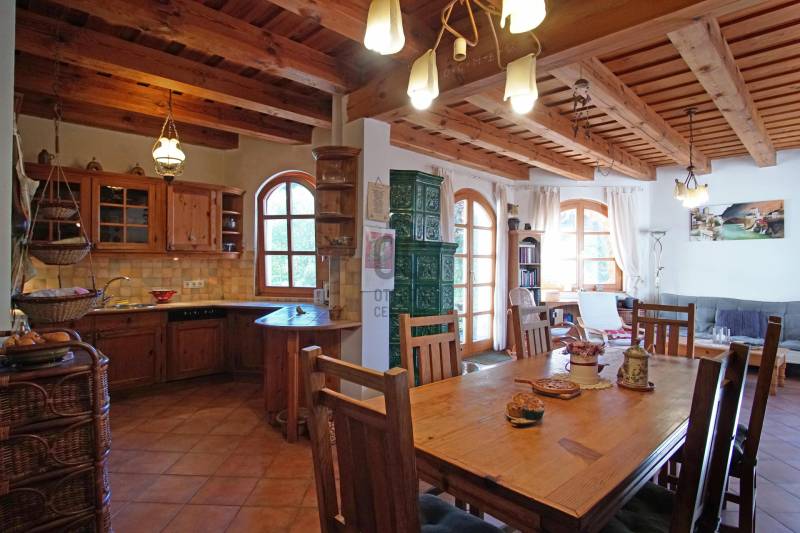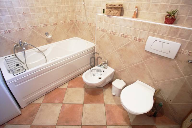 \"Vintage\" hangulat Tinnye központjában. Az önálló családi ház , 2000-ben épült, téglafalazatú . Az ingatlan jelenleg 7 szoba + 2 nappali, 130 nm alapterületű, 2 nagy terasszal rendelkezik. A tetőtérben egy további, 130 m2-es lakrész található, melynek egy része még befejezésre vár .A házba az első teraszon keresztül, az előszobába érkezünk meg, innen nyílik a többi helyiség: a nappali + étkező+ konyha , a kamra, a hálószobák, és a fürdőszoba. A hideg és a meleg burkolatok is a vidéki hangulatot fokozzák az ingatlanban. Gépesített konyha, zuhanykabinos fürdőszoba, plusz egy kádas fürdőszoba került kialakításra. A szobák burkolata hajópadló. A nappaliban nagyon hangulatos cserépkályha került megépítésre, mely nem csak egyedi megjelenésű, de télen a ház fűtéséről is gondoskodik. A nappaliból közvetlenül mind a két 12 nm-es, részben fedett teraszra és a kertbe léphetünk ki.Fűtés gázcirkóval megoldott, padlófűtés, a szobákban pedig radiátoros fűtés.A KERT:A kert hangulatos, teraszos kialakítású tele zöld növényekkel, örök zöldekkel, tarka virágokkal. A kertben pihenő sziget is helyet kapott, ahol grillezhetünk, sütögethetünk és fogadhatjuk a vendégeinket minden évszakban.A kertben van hely akár egy télikert kialakításra, illetve egy kisebb medence/jakuzzi elhelyezésére is. A kerti szerszámok elhelyezése a kert végében egy hangulatos kis tégla ház ad teret. Jelen kialakítás szerint nagy családoknak jó szívvel ajánlom. A tetőtér befejezését követően 2-3 generáció együtt élésére is meghitt családi otthon lehet az ingatlan. Iskola, óvoda, bevásárlási és sportolási lehetőségek elérhetőek néhány perces távolságban.Jöjjön el, nézze meg a házat, érezze a helyszínen is, hogy ez a vidéki hangulatú ház akár lehet az álmai otthona!