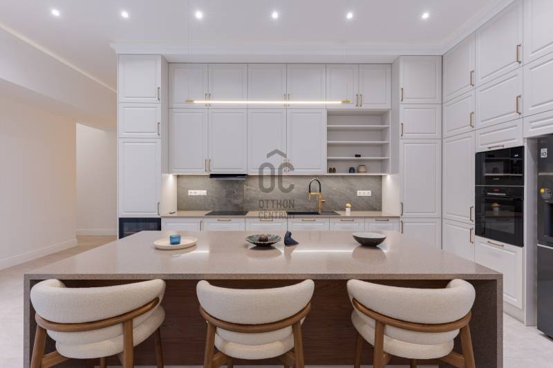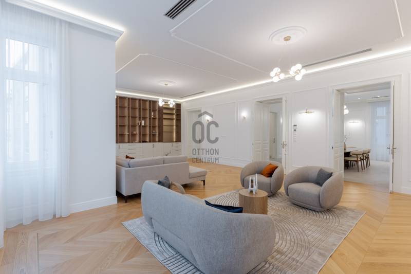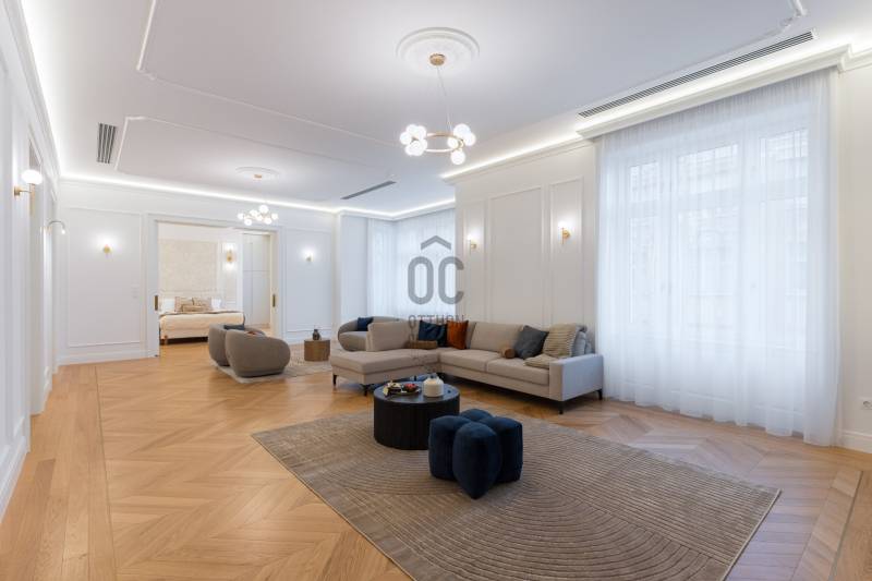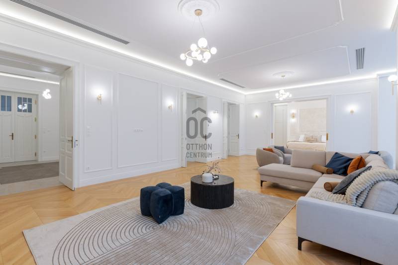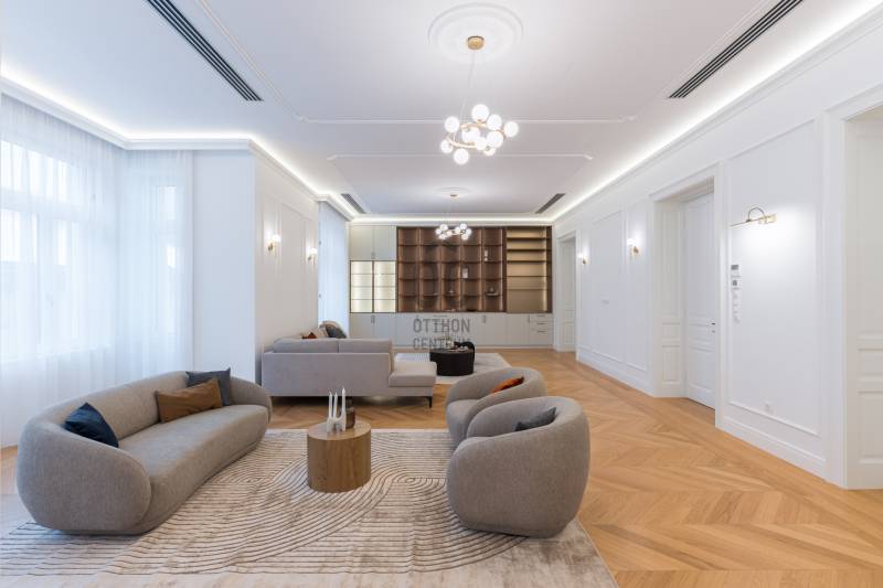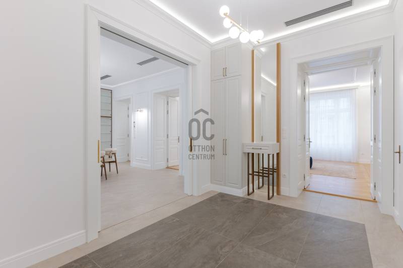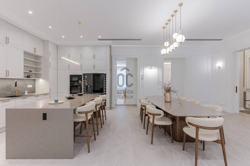 Budapest egyik legpatinásabb és legkeresettebb részén, a Szervita tér közvetlen közelében kínálok megvételre egy kivételes adottságokkal rendelkező, nettó 291 m²-es, 5 szobás, teljes körűen felújított luxuslakást. A nappali mellett 4 különnyíló szoba és 3 fürdőszoba biztosítja a maximális komfortot és a valódi luxusérzetet.Az ingatlan egy klasszikus belvárosi épületben található, ahol a történelmi elegancia és a modern műszaki tartalom harmonikus egységet alkot. A lakás felújítása során minden részletre kiterjedő, magas minőségű kivitelezés valósult meg: a gépészet, elektromos rendszer, burkolatok és nyílászárók egyaránt megújultak, prémium kategóriás anyagok felhasználásával.Műszaki tartalom:-padlófűtés, és mennyezeti hűtés-fűtés-okos otthon rendszer előkészítés-egyedileg készített ajtók és ablakok-szauna-elektromos redőny minden helyiségben-garanciális beépített gépek -egyedi kerámia fürdő...Az ingatlan a képeken is látható teljes berendezéssel és gépesítéssel együtt kerül értékesítésre, így az új tulajdonos számára azonnal költözhető, kompromisszummentes megoldást kínál.Elhelyezkedésének köszönhetően pár lépésre elérhető Budapest belvárosának minden meghatározó pontja: éttermek, kávézók, üzletek, valamint kiváló közlekedési lehetőségek.Ritka lehetőség a belváros egyik legértékesebb lokációjában!