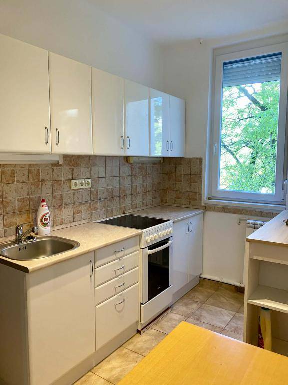 Családi házas övezetben kiadó ez az Első emeleti, társasházi lakás. Nem zsúfolt, szinte egyedül áll ez a ház itt és egy nagy, zöld park van előtte.Két külön életvitelű személy számára is alkalmas, mert a két szoba teljesen szeparált egymástól.A háznak külön elkerített kertje van, így csak az itt lakók tudnak ide bejönni.Az erkély jó méretű, fedett és árnyékoló is van, ha nem lenne elég a lakások előtti fák lombjainak árnya. És kamra is van a lakáshoz, ami be is van polcozva, és rengeteg mindent képes elnyelni.A lakás felújított, ragyogó napfényes (a konyha és a fürdő is), ráadásul csodás fák zöldítik minden irányból.Mindkét szobában klíma van, nyílászáróit pedig nemrég cserélték, és minden ablakra tettek szúnyoghálót is.A beépített konyhabútor a lakás tartozéka (mosogatógép és mikró is van), a bútorok pedig, amik a képen láthatóak igény szerint maradhatnak, amennyiben van saját, el is tudjuk vinni őket. (hűtő, mosógép nincs)Rezsi:- KKtg.: 7.000 Ft/hó + 2.500 Ft/hó a szemétszállítás,- Távhő: 11.600 Ft/hó (télen-nyáron),- Ezen kívül a vizet és a villanyt kell még fizetni fogyasztás alapján.A környéken ingyenes a parkolás és mindig van hely, mert jellemzően családi házak épültek erre, a környék pedig nyugalmas, biztonságos.A buszmegálló pedig 150 méternyi sétatávolságra van, amit egy kimondottan szép utcán kell megtenni, ha tömeg közlekedést választja.